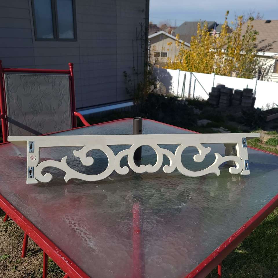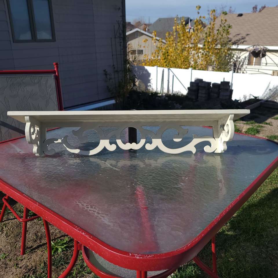 White Wooden Shelf with groove for decorative plates or pictures. Design Themes: Shabby chic Vintage-inspired Modern farmhouse or coastal farmhouse English cottage or cottagecore