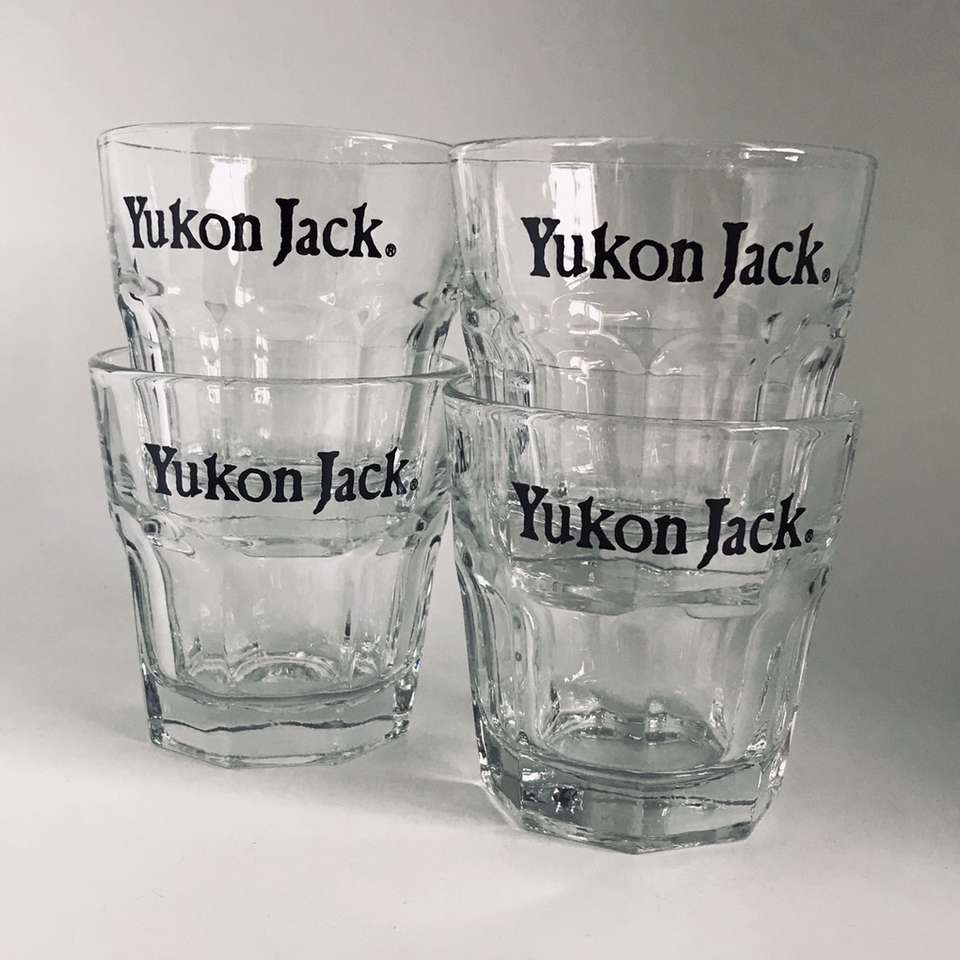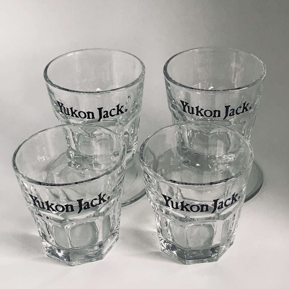 Set Of 4 Yukon Jack Hard To Find Whiskey Glasses