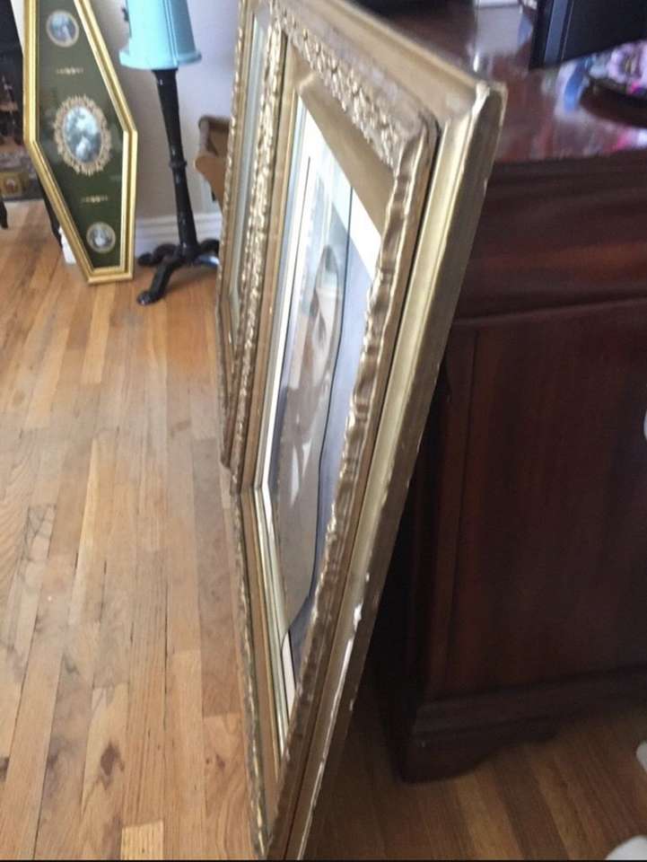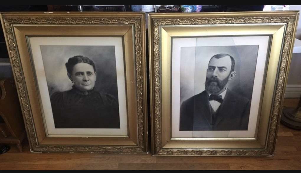 I’m not sure the age of these two large photos, but they appear to be a prominent couple, and i believe the portraits were done in charcoal. The frames have little wear but are beautiful! The glass needs to be replaced for the Mr, only partial left in frame. Great addition to any Antique inspired setting. Approx dimensions: 29.5” W x 33.5 T x 2” D