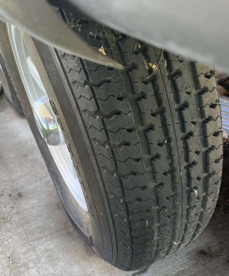 Does have a scrape on top front right that does not affect frame. See to appreciate. Very Easy tow.