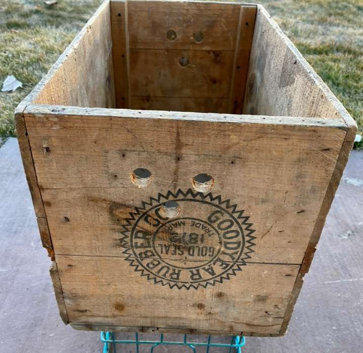 Great vintage piece. Wooden crate marked Goodyear Rubber CO, ST. Paul, Minn. U.S.A.