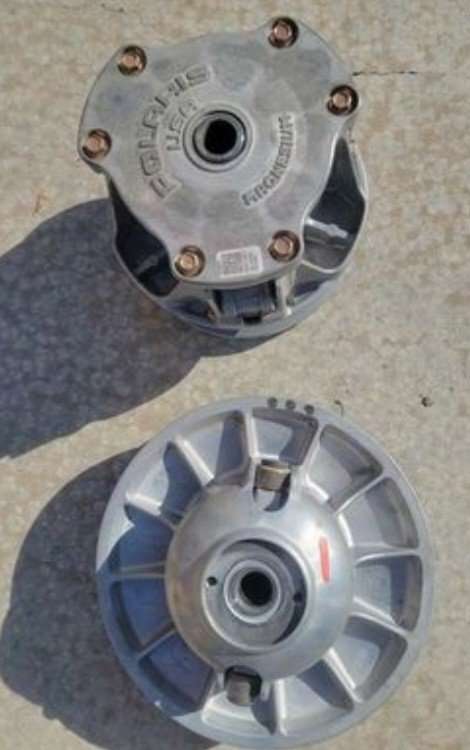 Drive clutch Polaris part no. 1323006 with original factory spring and weights installed.