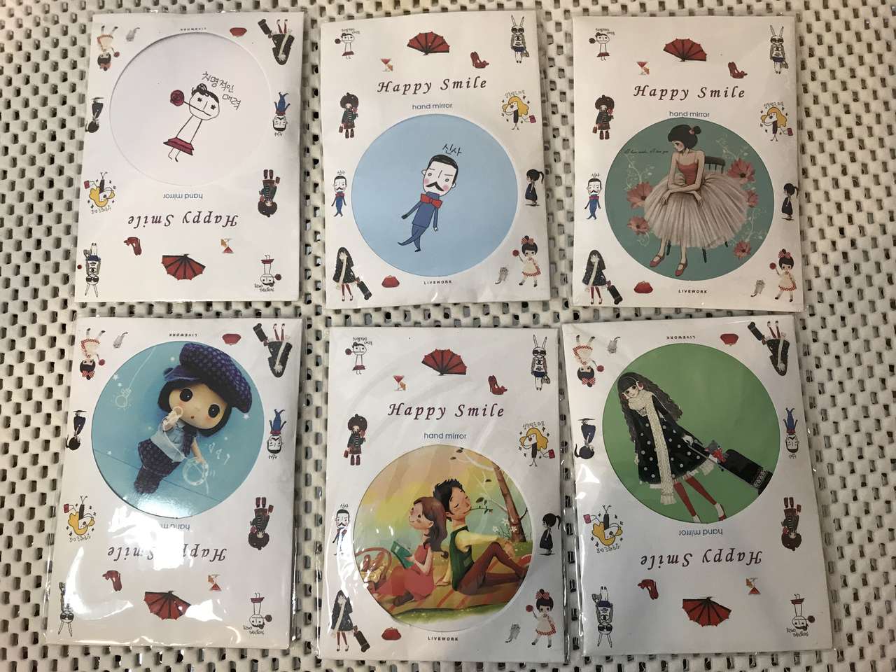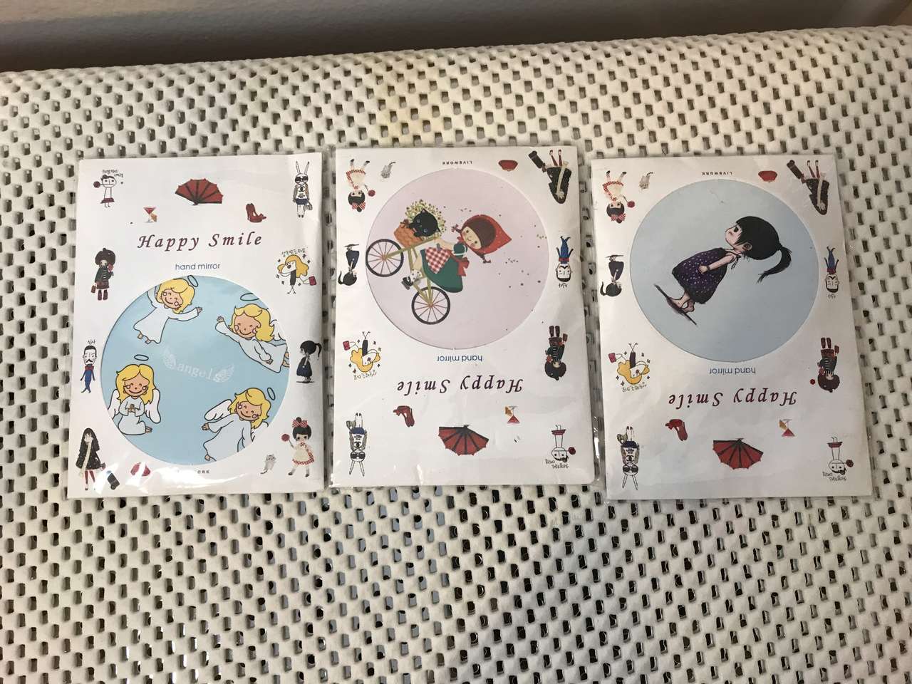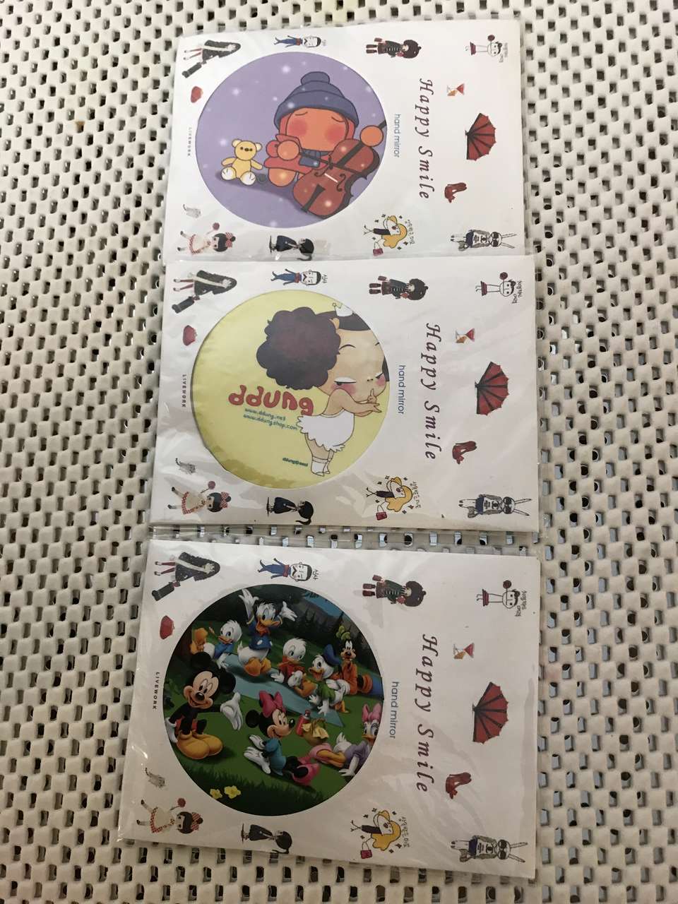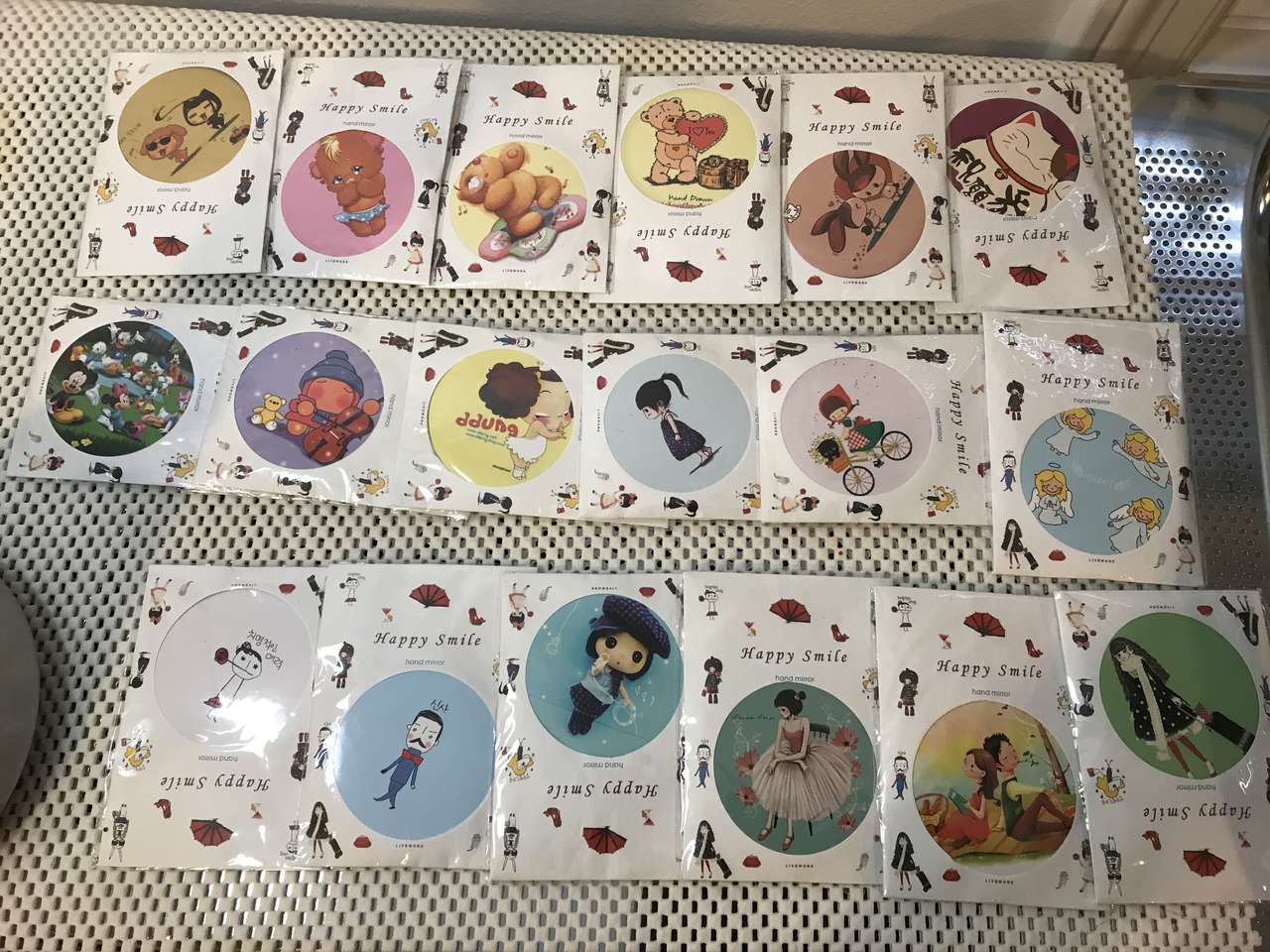 Happy Smile Cosmetic Compact Hand Mirror for Pocket or Purse 2 3/4" Dia. Pick from Several Designs pictured. Great gift for friend, teacher, or family member. These are hard to find. 2 for $5.00.