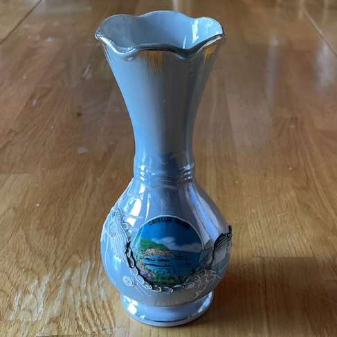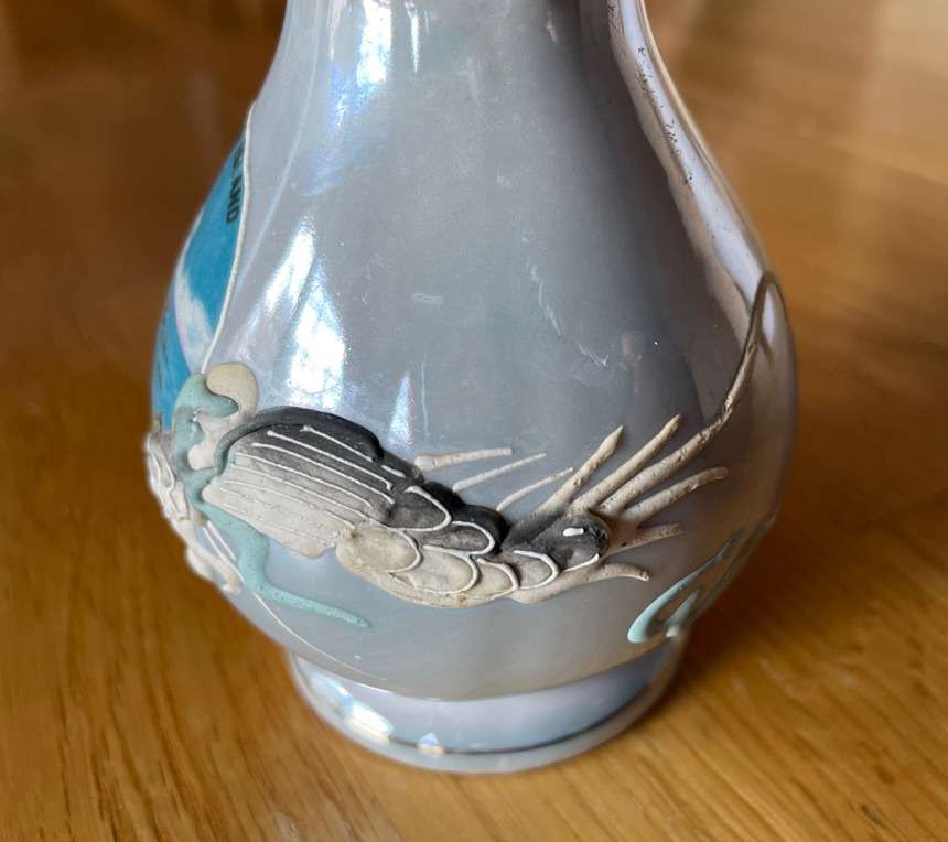 Vintage blue porcelain Dragon/Avalon Bay Vase. It is 6,5” high. Made in Japan. $8