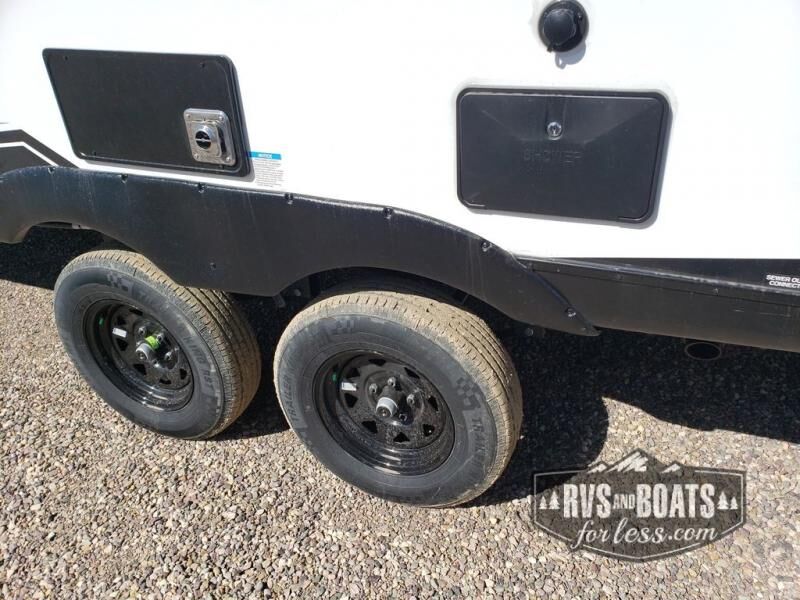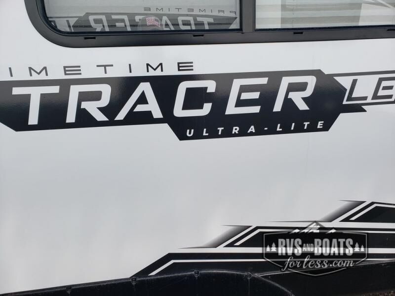 With any Tracer LE travel trailer by Prime Time, you will have Eternabond construction, an enclosed and heated underbelly by radiant and forced air heat to tank compartment for four seasons of travel, a manual tongue jack and stabilizer jacks, plus steel wheels and steel entry steps with an XL grab handle. Inside there is LED lighting, a soundbar, shaker style cabinet doors, and more depending on the trailer you choose!