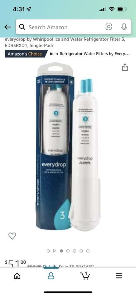 Genuine Whirlpool EDR3RXD1 refrigerator water filter, new in unopened plastic- I bought the wrong one, and ripped the outer box off before we realized it, so can’t return it. Great deal, save $30
