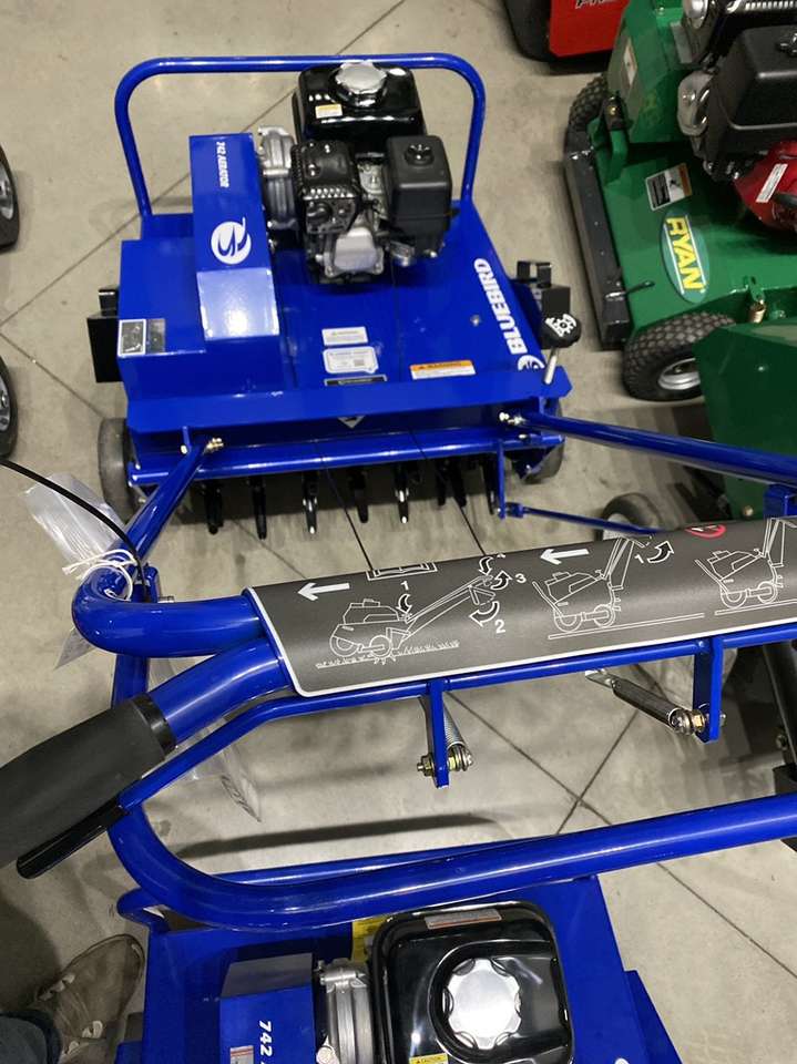 We have financing available on approved credit!! Brand new Bluebird H742 Aerator with Honda engine. This is the wide model, (7 rows across). This is a commercial grade aerator with a commercial Honda GX120 engine. Has solid front wheel and is self propelled. This aerator is single chain, with quick adjust chain tensioner. Aerator is located at Cutlers Inc in Orem. We are a full service Bluebird dealer for all your parts, sales and service items. We also have financing options on approved credit. We are located at 271 North State Street in Orem. Questions?? 801-224-5005