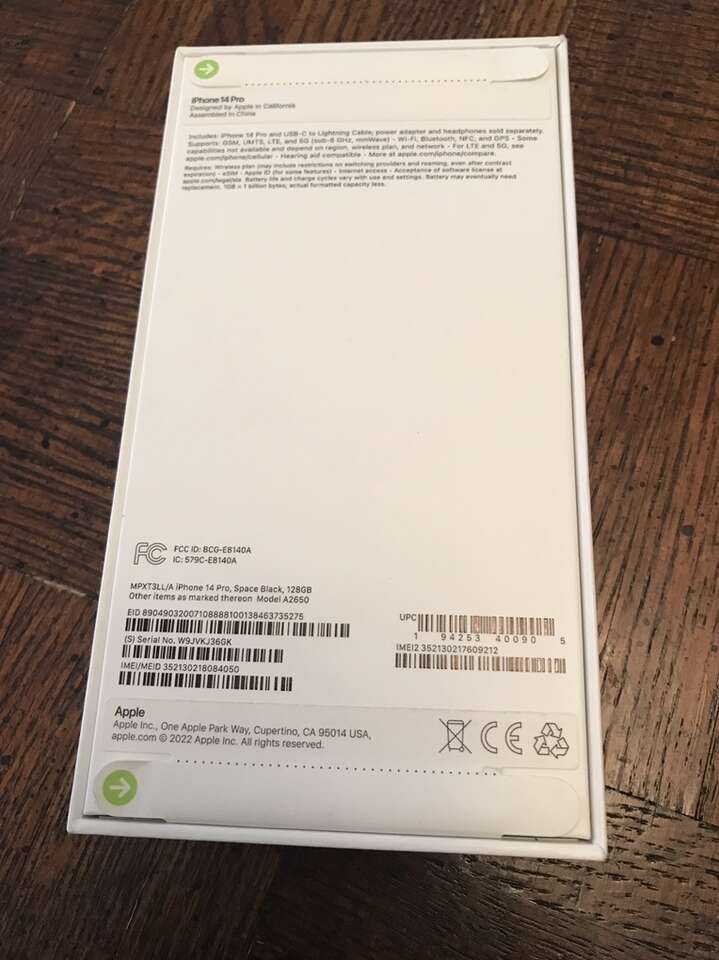 Phone 14 Pro Black 128GB new in box In person cash sale only - no shipping or check scams.