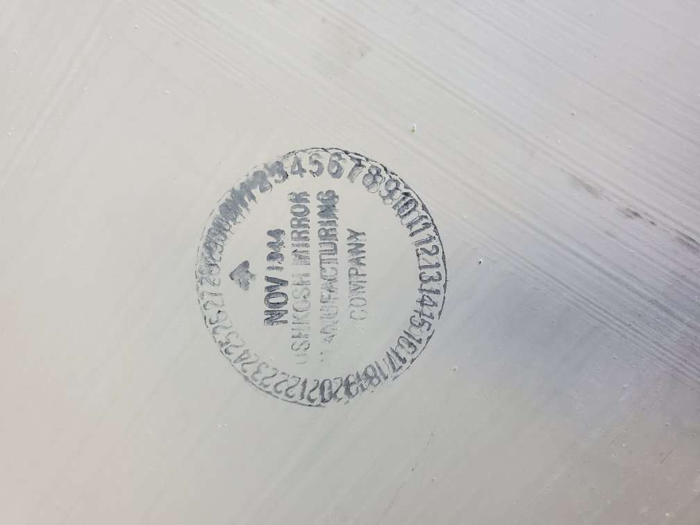 See yourself in this vintage Oshkosh mirror. 36 by 30 inches. 1/4inch thick glass. Manufactured in November 1944. Frame it in the frame of your choice. It has some back chips in the mirror material on an edge but you can frame it out. 20.00 CASH ONLY OBO