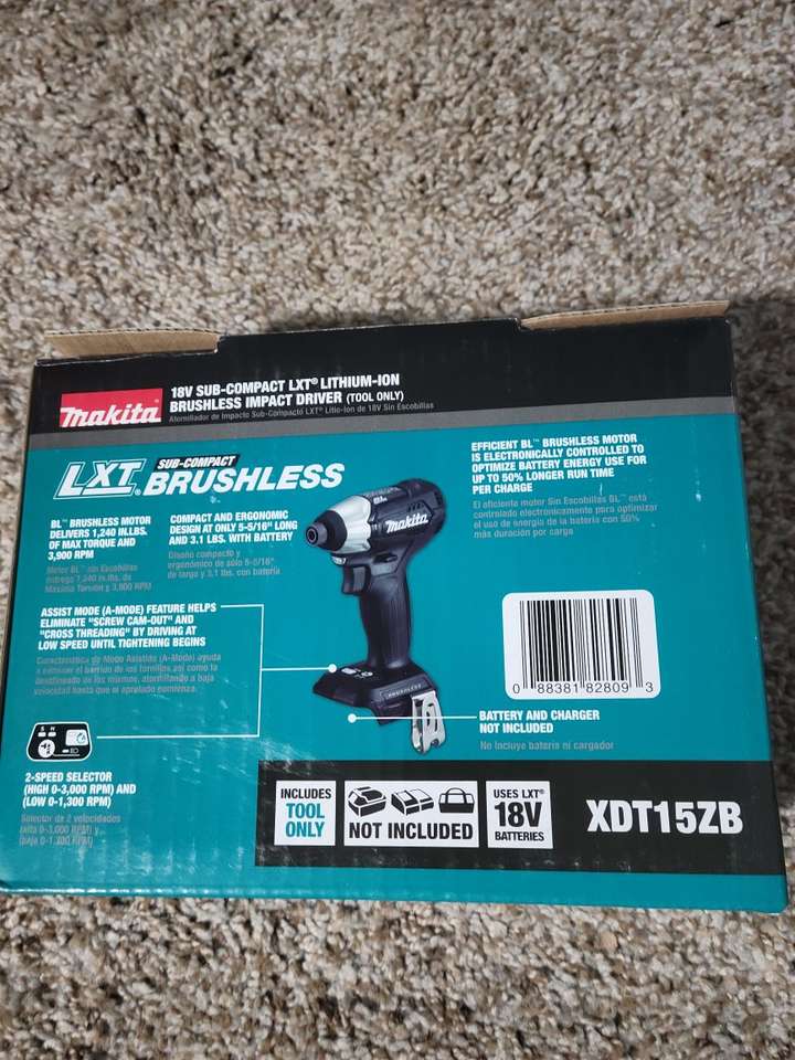 Makita 18v sub-compact LXT Lithium-ion brushless impact driver. Tool only, new in box. Model XDT15ZB