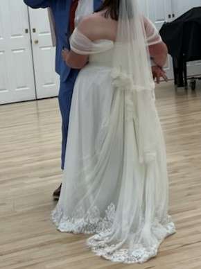 Larger girl who needs a deal on an expensive dress? This size 18/20, corset back dress was originally $1700 but you can own it for only $850. Only worn once, and comes with a veil, all you need is someone on the other end of the aisle. Alerted only for length to fit a 5'4" woman in flat shoes, and an added bustle. Unfortunatly need to sell it to help pay for the honeymoon baby we've ended up with.