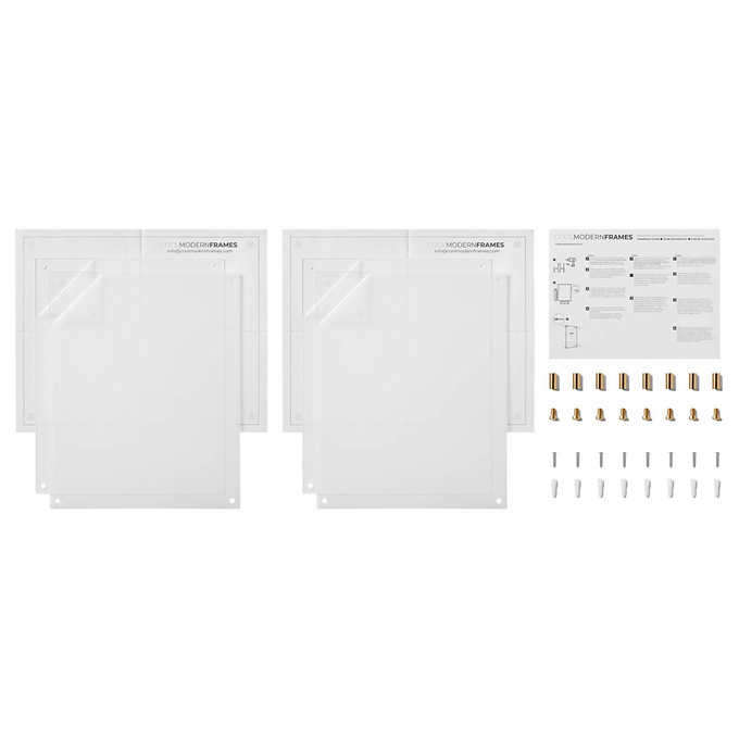 We have one Clear Floating Acrylic Frame in a 2-pack size 16" x 20" #74234 available. These frames come in Glod or Silver Installation Hardware. Right now we have one gold in stock at this time. This set of Frames is New and comes in original box.