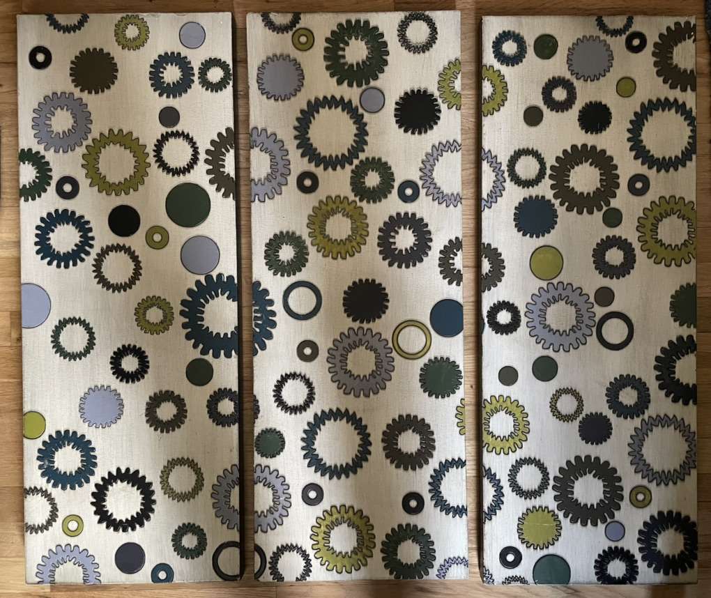 Nice, fun, modern art piece. 3 panels sold together. Geometric design. Originally $99