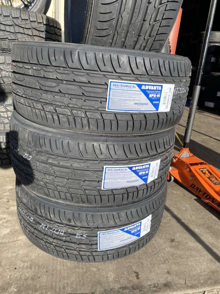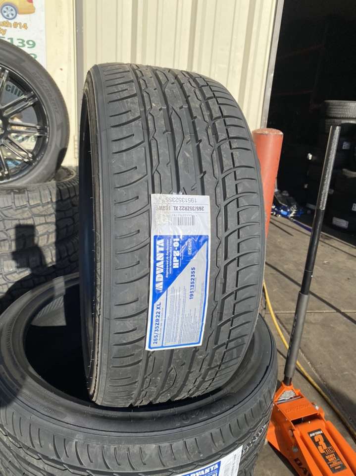 BRAND NEW SET OF ADVANTAGE HP Z-01 ALL SEASON M+S 265/35R22 630 PLUS TAX MOUNTED AND BALANCED GREAT TIRES FOR ANY WEATHER CONDITIONS WE ALSO OFFER 90 DAY NO INTEREST FINANCING WITH ÁCIMA ANY QUESTIONS CALL THE OFFICE AT 8016620227 OR TEXT 8015029309 OR COME VISIT US AT OLIVER TIRES 3010 W 500S SALT LAKE CITY 84104 #11 OPEN MON-FRI 9AM-6PM WE CARRY LOTS OF USED AND NEW TIRES AND WHEELS