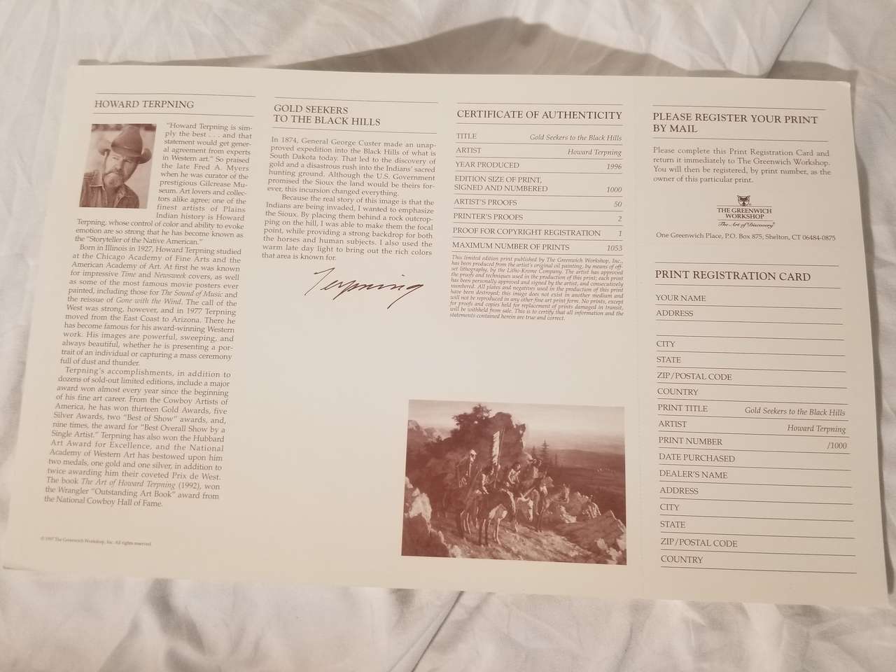 Howard Terpning "Gold Seekers to the Black Hills" Limited Edition 1996