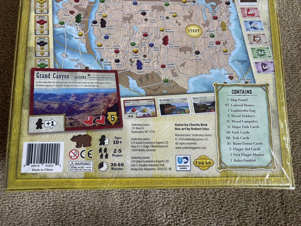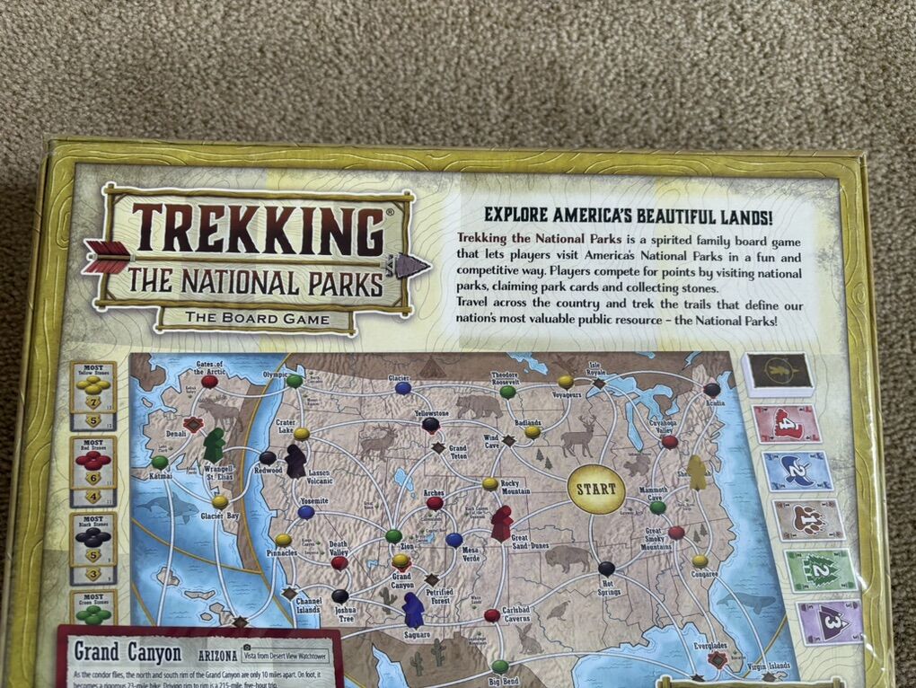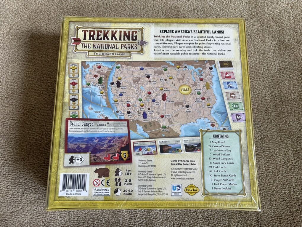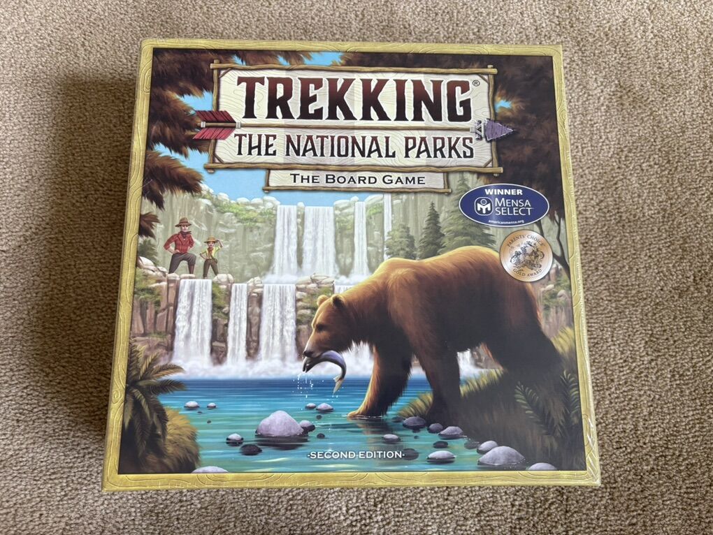 NEW (sealed in plastic) Trekking the National Parks board game, second edition. Underdog Games, Bink Ink, 2020. Ages 10+, 2-5 players. Winner, Mensa Select Award and Parents’ Choice Gold Award. Well made, high-quality game. NEW, unopened condition. Text only. Cash or Venmo. Discount on multiple items.