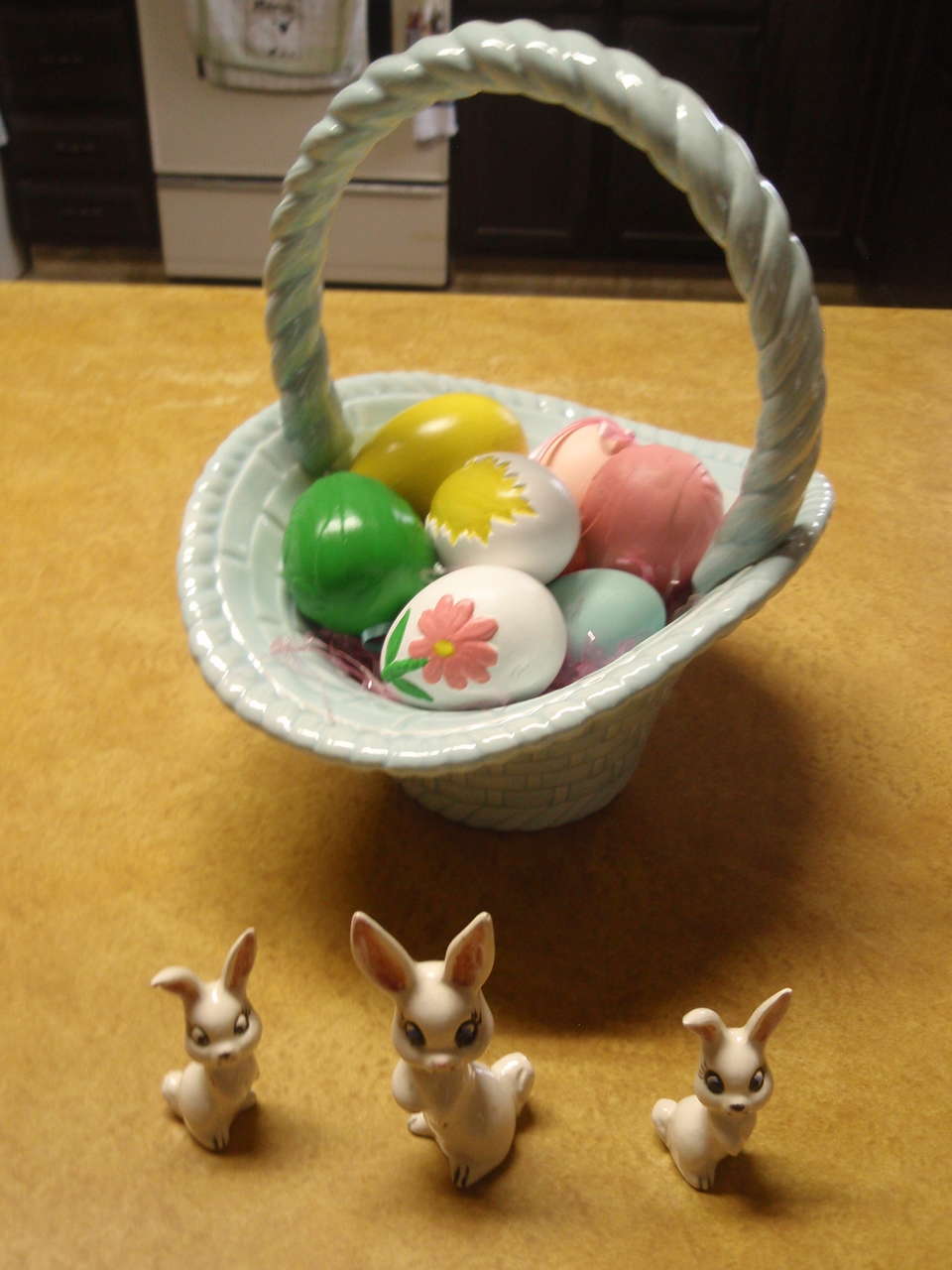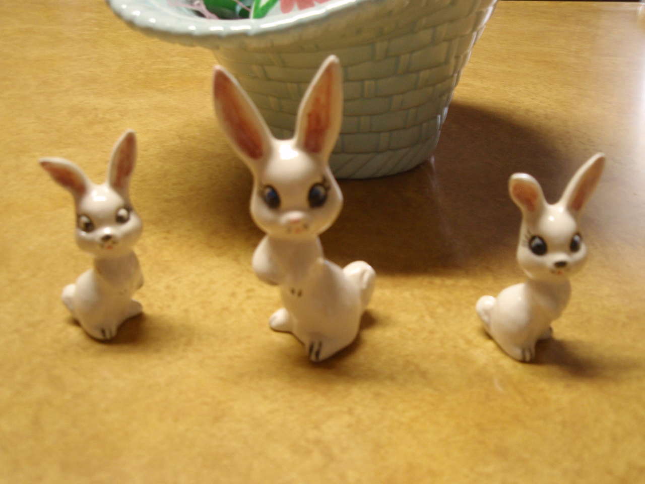 Easter Basket with 6 eggs and 3 bunnies - ceramic