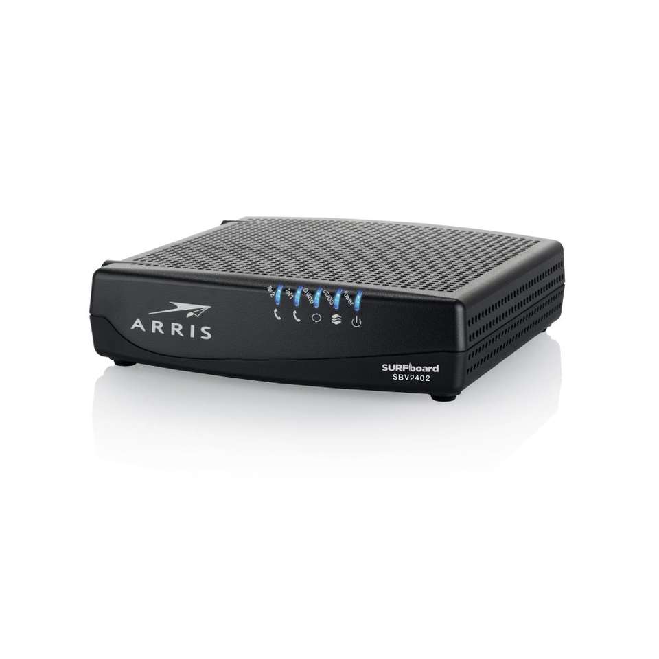 NEW. Sealed box The ARRIS Surfboard SBV2402 is a DOCSIS 3.0 Cable Modem Certified for Xfinity Internet & Voice Service. The SBV2402 has 24 downstream and 8 upstream channels and is best for cable internet speed plans up to 600 Mbps (always check with your cable internet provider to confirm compatibility with your service plan). It is equipped with a 1 Gigabit Ethernet port which can be used to connect to a Wi-Fi router, plus 2 Telephony Ports for digital voice service. Setup is simple with just a few steps and a visit to the Xfinity online self-activation portal; you will have your network up and running in no time. It is compatible with any Wi-Fi router and will only work with Xfinity Digital Voice Service. Power your network with the Surfboard SBV2402 for reliable, blazing fast cable internet for things like gaming, streaming, working, smart devices and more. Stop renting and own your modem today!