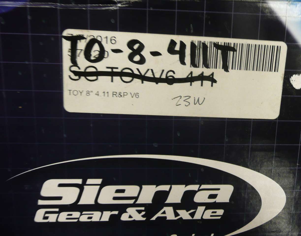 Sierra Gear & Axle 8″ Toyota V6 – 4.11 Ratio Ring & Pinion V6 – 29 Spline. WE DO NOT KNOW WHICH YEAR THIS PART FITS. This is a new part.