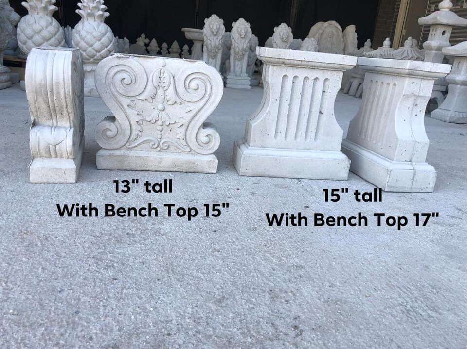 We make 7 different styles of benches tops & 2 styles of legs/base.