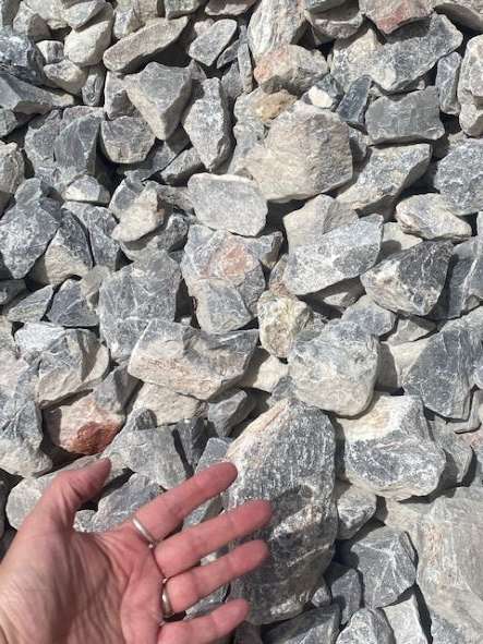 Our Twilight is normally a darker gray colored, fractured limestone with a few tan, orange and pink and white highlights. It is a natural rock that can vary and have more or the secondary colors in it at any given time. This is an excellent price for this cobble. Our competitors sell it for upwards of $100/cubic yard. This is a fully fractured rock and is more jagged shaped rather than round on the edges. Twilight offers a unique color and shape and will go very well with so many house colors of type of foliage. We recommend it be used in xeriscape areas.