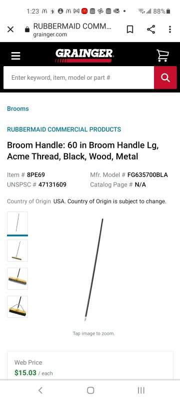 I have several brand new black 60 in broom handles or whatever you need a wood handle for. Grainger sells news for 15 bucks a piece. I will sell them for $10 each or if you want all of them I can make you a deal. Brand new never used.