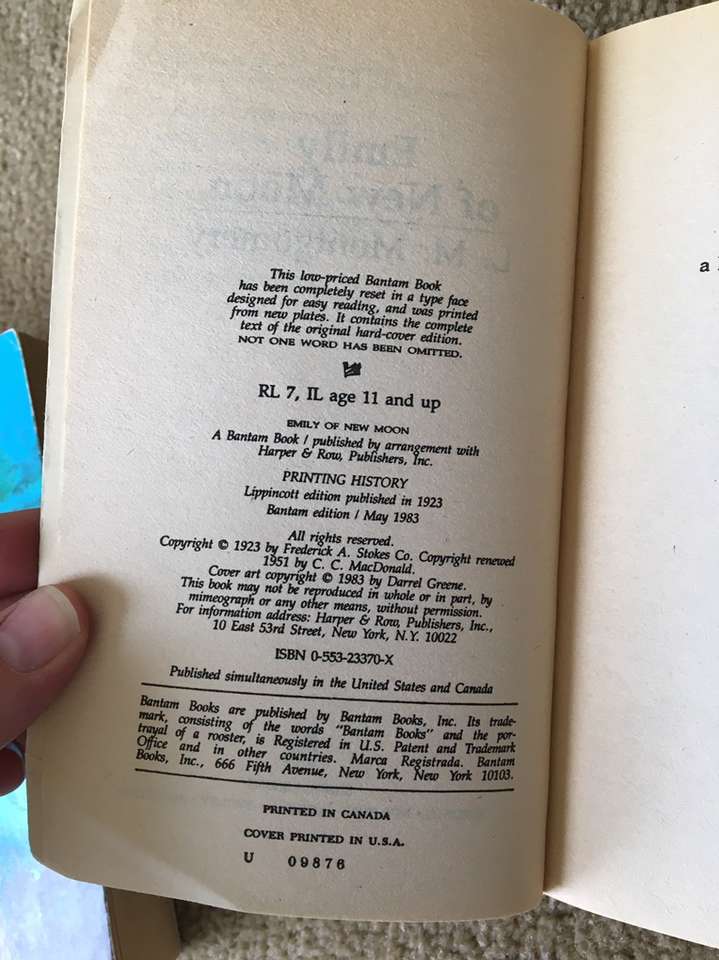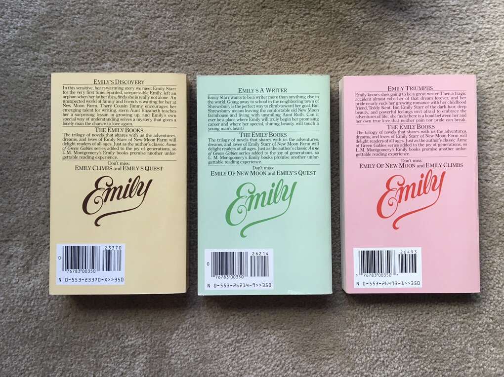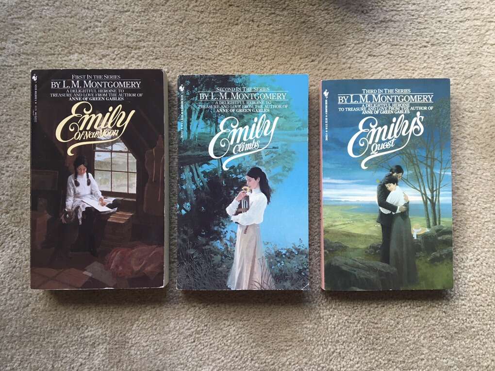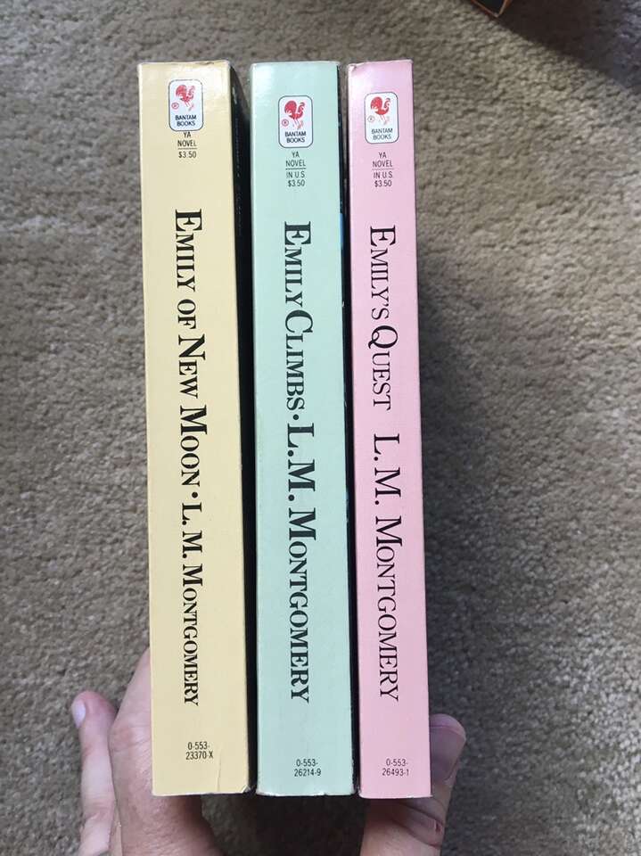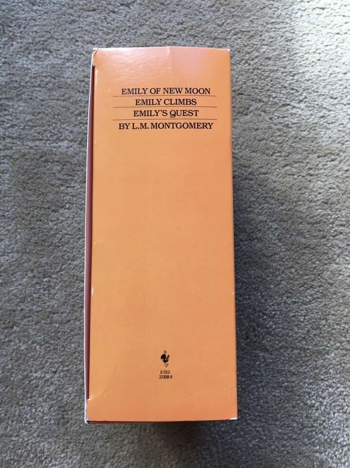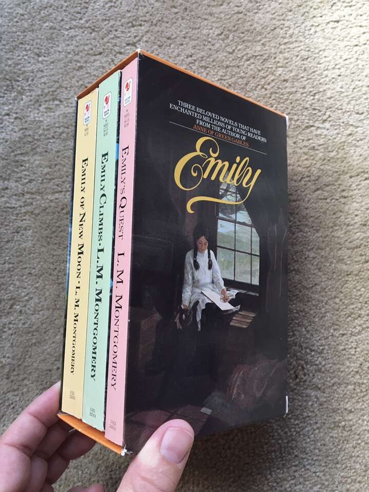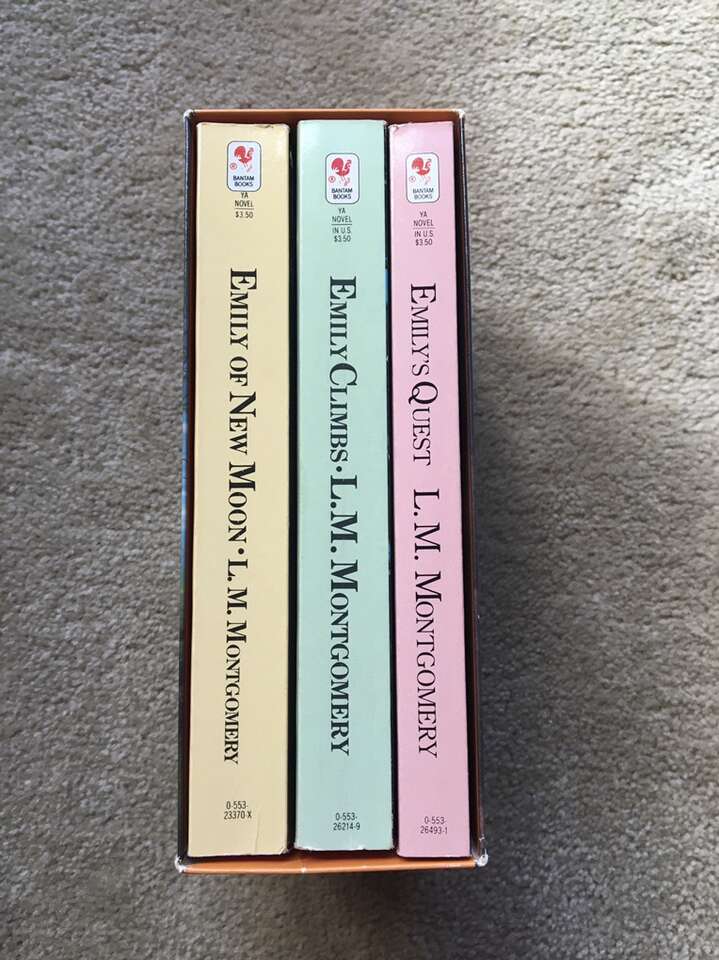 Emily of New Moon trilogy boxed set—vintage 1983 paperbacks by L. M. Montgomery. Emily of New Moon (1923/1983, 339 pages), Emily Climbs (1925/1983, 325 pages), and Emily’s Quest (1927/1983, 228 pages). Excellent, like new condition--no marks or damage. Text if interested. Cash or Venmo.