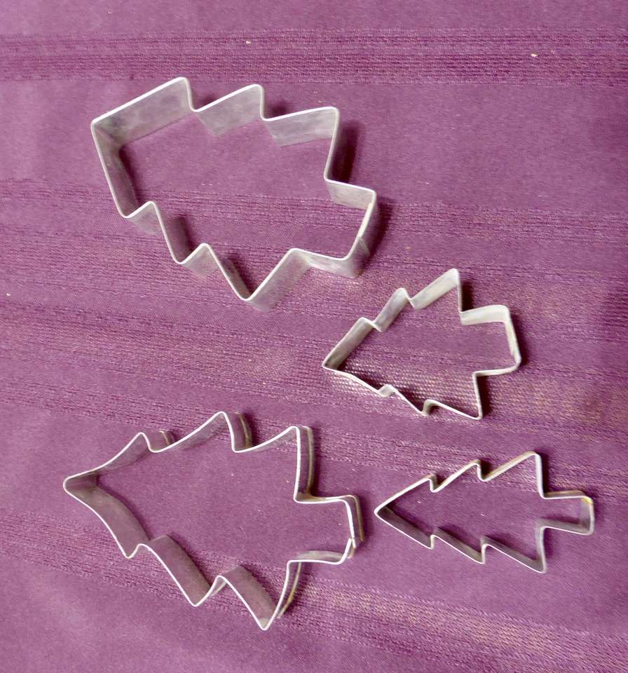 They Measure… from 5 3/4 inches tall to 3 inches for the smallest ones. One of the taller metal trees is separated at the base but still works well for making cookie shapes.