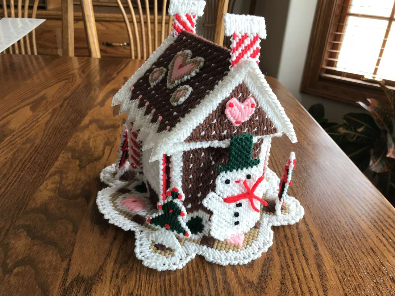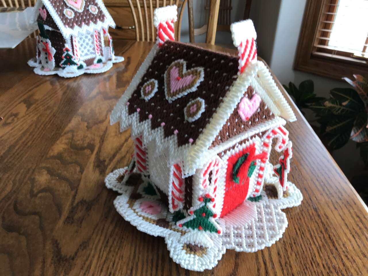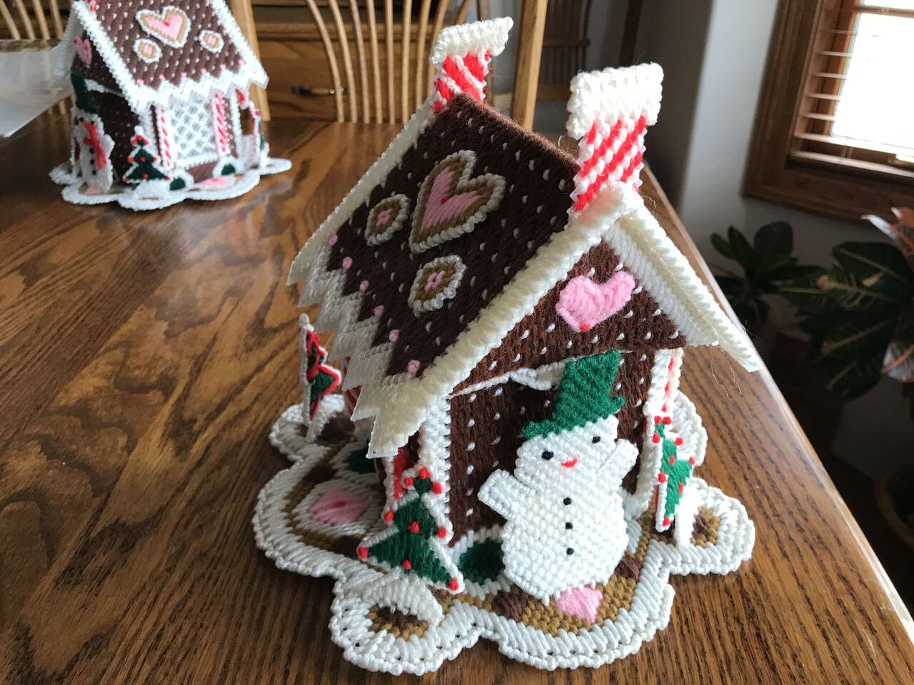 Gingerbread Plastic Canvas Goodie House, used but in excellent condition. I have 2 but second house the yarn is different. $75.00 each. They are washable.