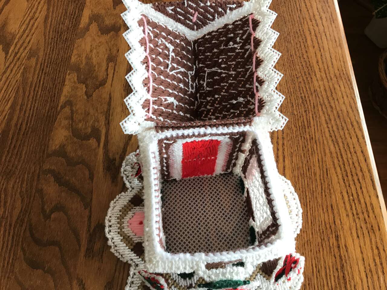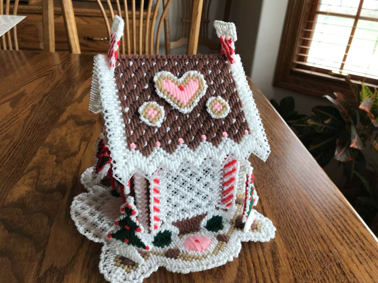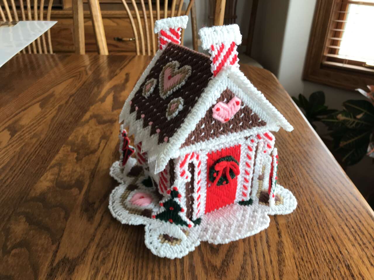 Gingerbread Plastic Canvas Goodie House, used but in excellent condition. I have 2 but second house the yarn is different. $75.00 each. They are washable.
