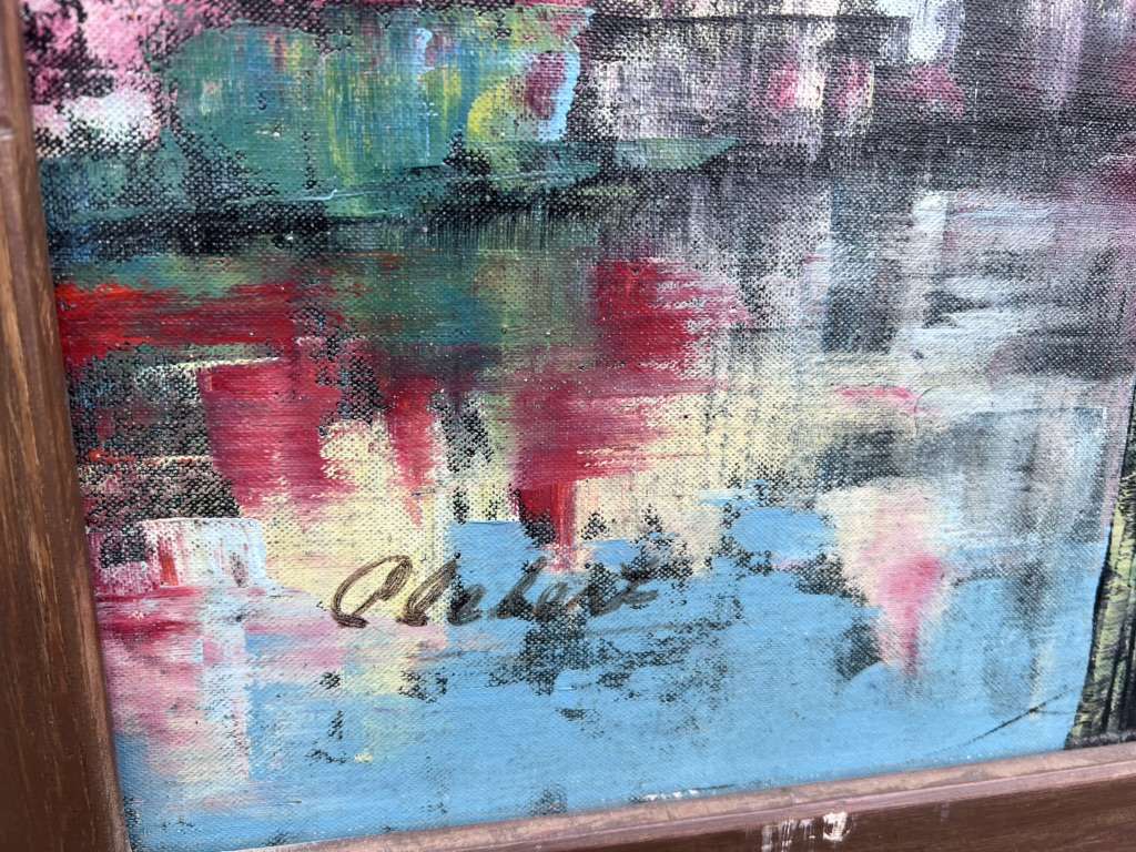 SLC. Painting is in good condition. The frame has wear. Signed on the left corner. It. Looks like “Alebert” but I doubt it. 28.5” x 40.5”. Cash, Venmo Text is best