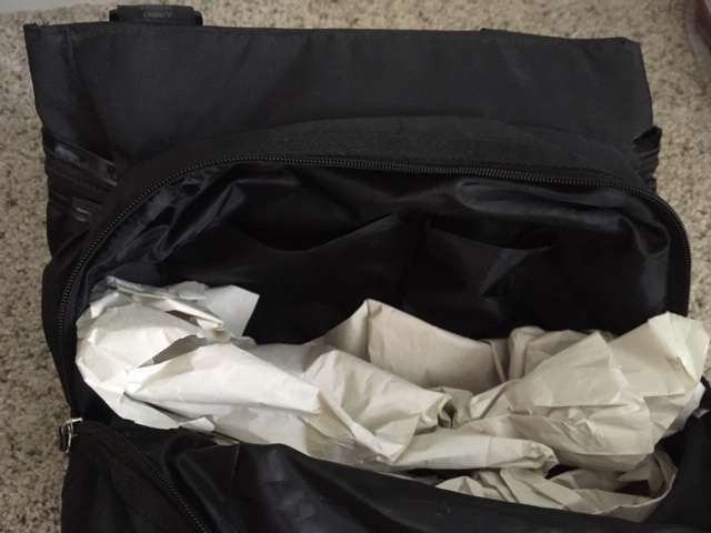 VenmoThis purse is brand new. I found something I liked better, but never took it back. It has an outside zipper compartment and also a velcro fastened outside pocket. It has a zipped center - inside that there is one zippered compartment and 2 open pockets.
