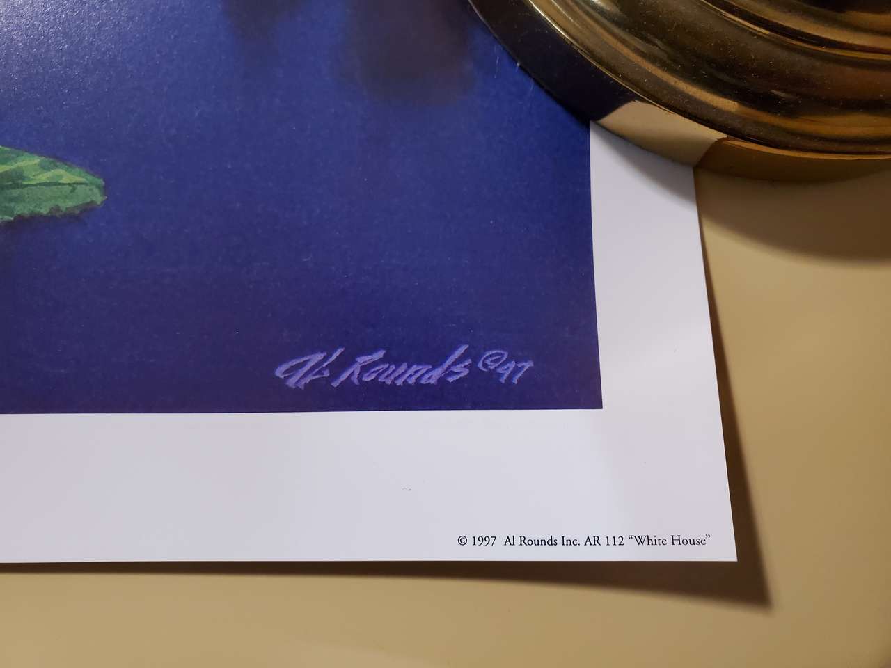 Vintage (1997) “White House” print by artist, Al Rounds. Beautiful view of the White House and pond with water lilies, circa 1930.