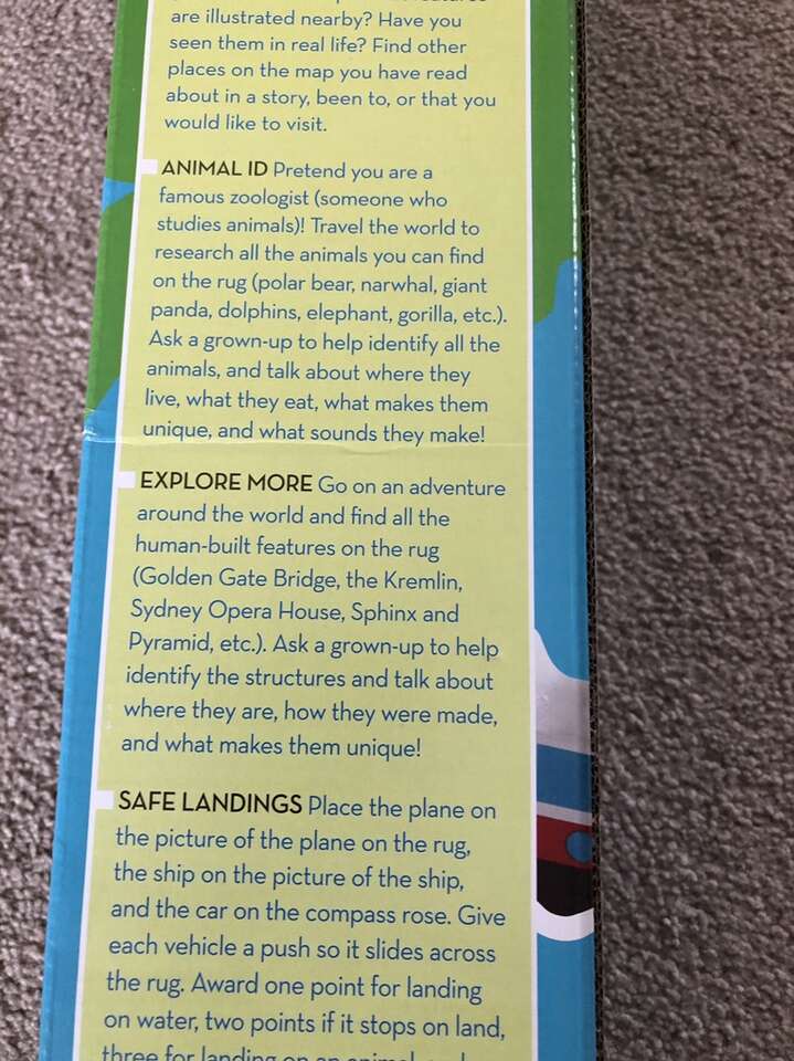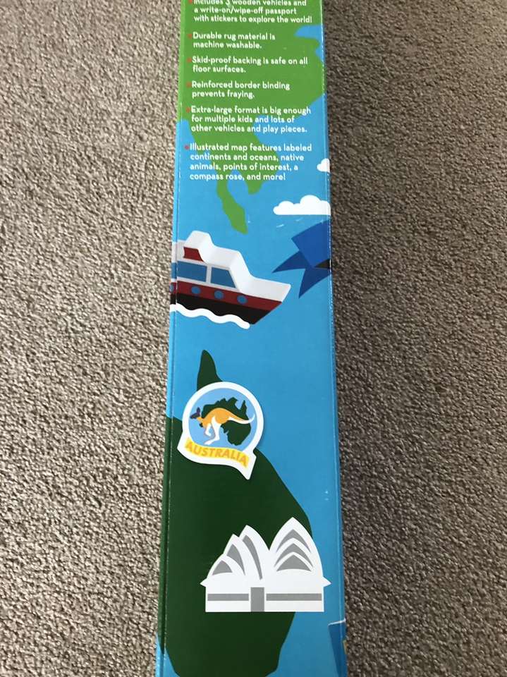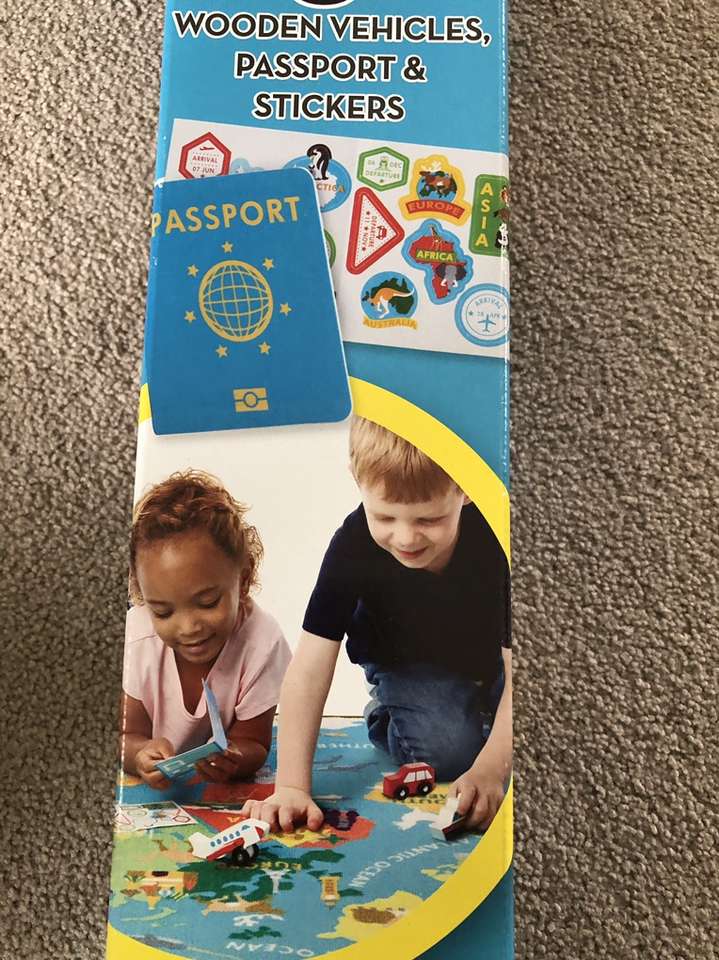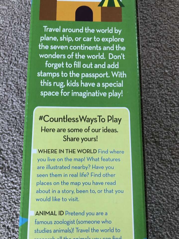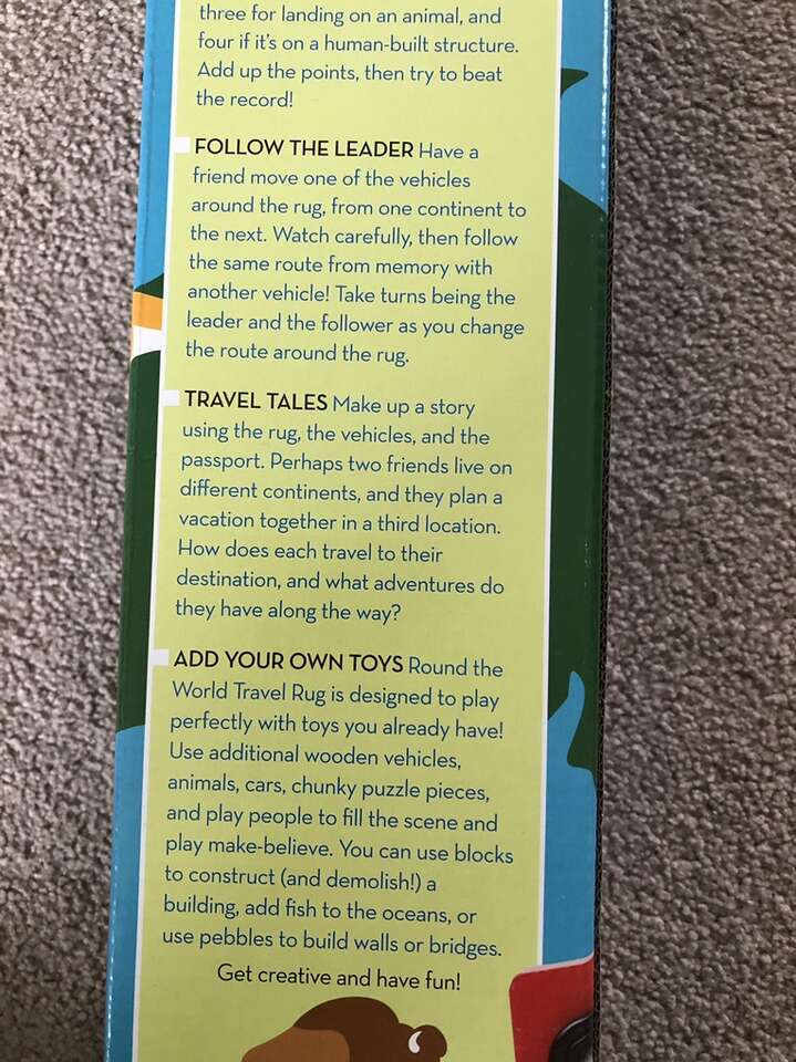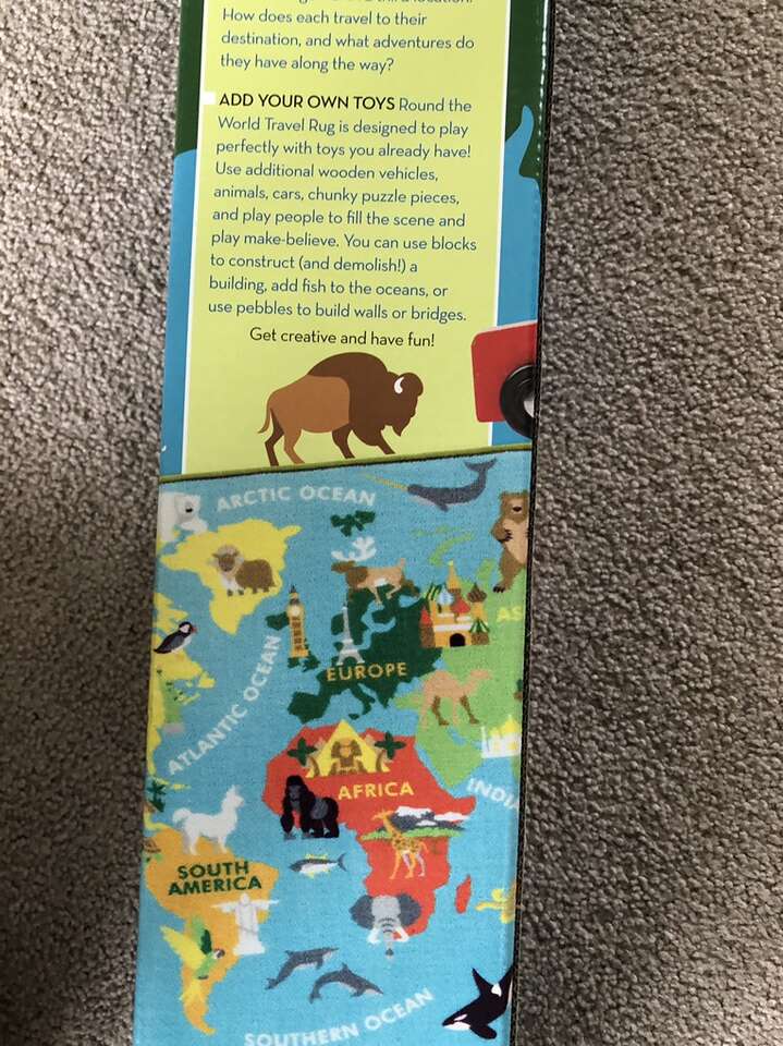 What you’re looking at is a brand new Melissa and Doug round the world travel rug with included toys product of World Market.