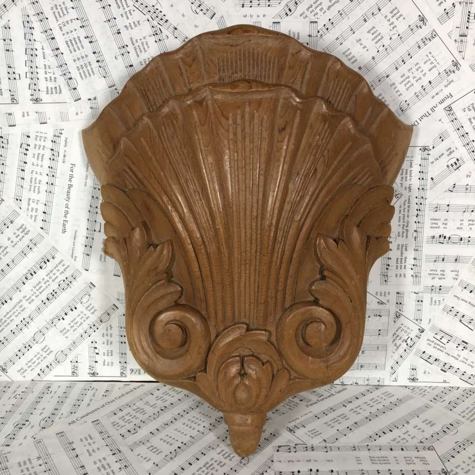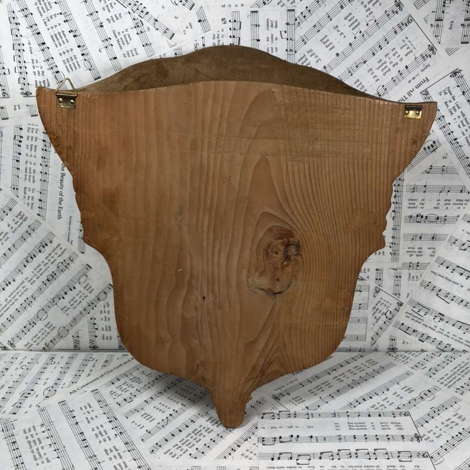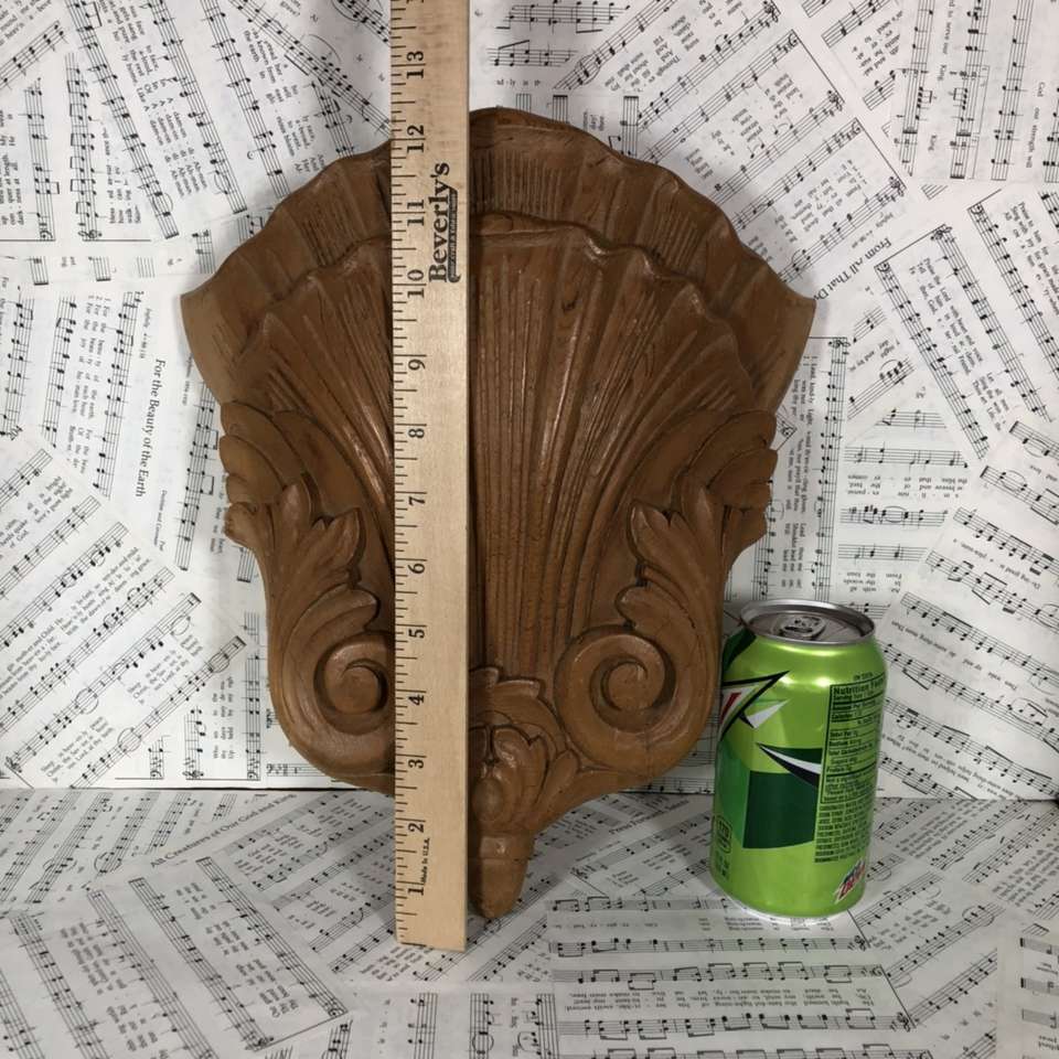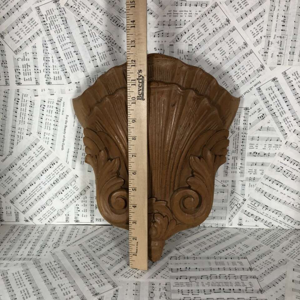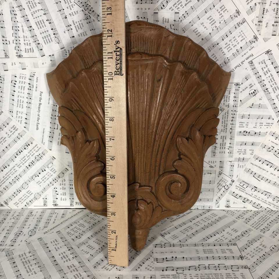 One-of-a-Kind Classical Style Hand Carved Hardwood Wall Pocket. There are lots of little imperfections due to it being hand-carved and not made by machine. Smooth closed pore knot-less wood ( Maybe walnut) is the carved front and 5/8ths” wood for the backing that does have a knot. They are glued together all along the edges and are like one piece. Backing is also closed pore & smooth. Needs new hangers and has a chip on one of the swirls - see photo. 12.5” Tall X 11” Wide X 3.5” Deep. Delivery available to a convenient location when in your area for $5.