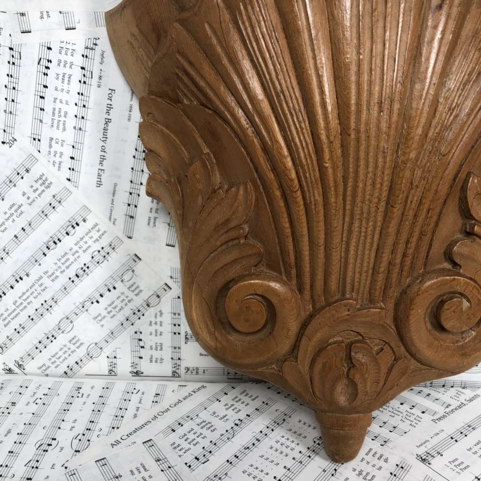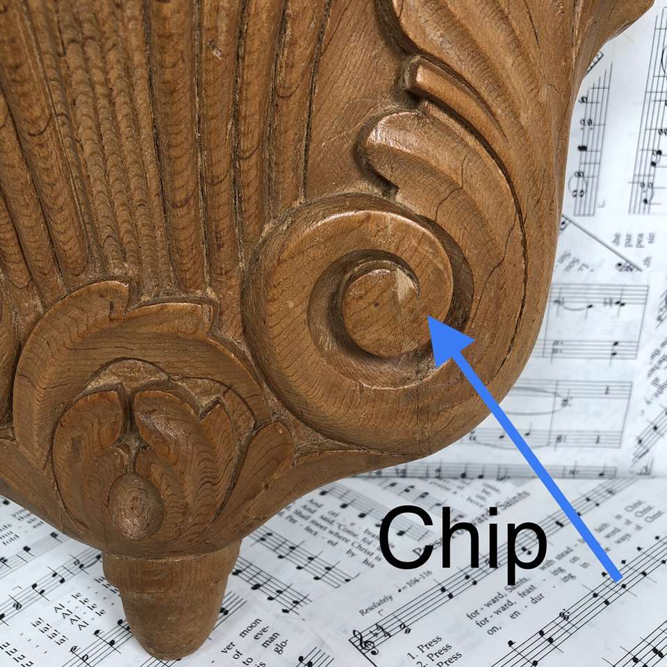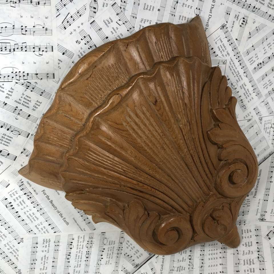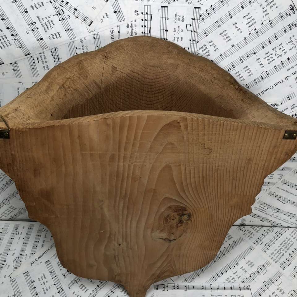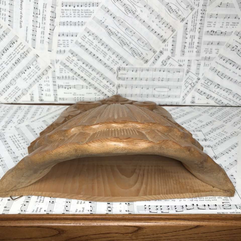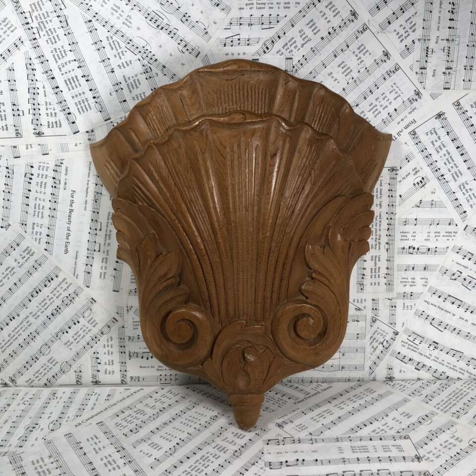 One-of-a-Kind Classical Style Hand Carved Hardwood Wall Pocket. There are lots of little imperfections due to it being hand-carved and not made by machine. Smooth closed pore knot-less wood ( Maybe walnut) is the carved front and 5/8ths” wood for the backing that does have a knot. They are glued together all along the edges and are like one piece. Backing is also closed pore & smooth. Needs new hangers and has a chip on one of the swirls - see photo. 12.5” Tall X 11” Wide X 3.5” Deep. Delivery available to a convenient location when in your area for $5.