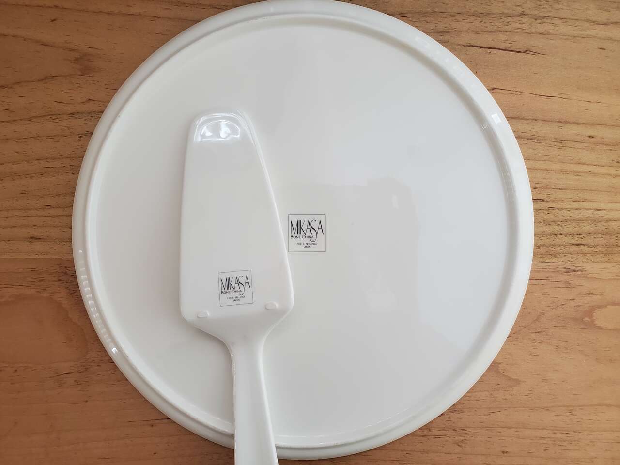 Can meet Ogden/SLC. Excellent Mikasa quality. Beautiful 2 piece cake server. Floral pastel garden spring colors with crisp silver trim. This would make an excellent gift. Great wedding/birthday cake server or for any celebration. This 2 piece set displays beautifully. "The pattern is FX012 Feelings". There are no scratches or chips.