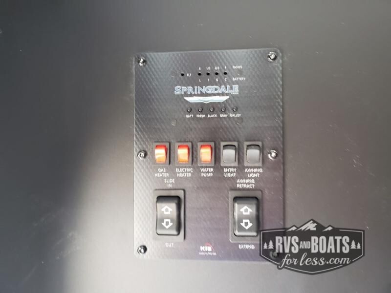 With any Keystone Springdale travel trailer, you will have a friction hinge entry door with sturdy LCI SolidStep steps, a pass-through storage compartment for your outdoor gear, and reliable Dexter E-Z Lube axles to maneuver your Springdale down the road and into the campsites. Some of the Keystone Exclusives provide 12V color-coded wiring with easy-to-trace circuits which is better than conventional RV wiring allowing a faster diagnosis for quicker repairs, and the streamlined heat distribution that uses in-floor heat vents for more efficiency for uninterrupted air flow. Also included, the Blade high performance air flow system that delivers 30% more air flow. The interior gives you pressed kitchen countertops, pleated night shades, and designer upholstered window valances for easy care and style, and more depending on the Springdale you choose!