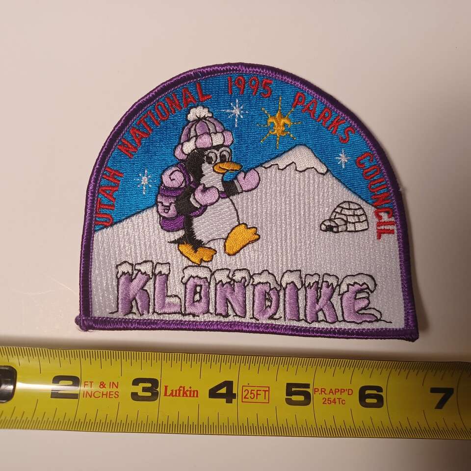 Utah National Parks Council Klondike Derby 1995 Patch Boy Scouts of America BSANew patch See my other ads for other Utah National Parks Council and Boy Scouts patches