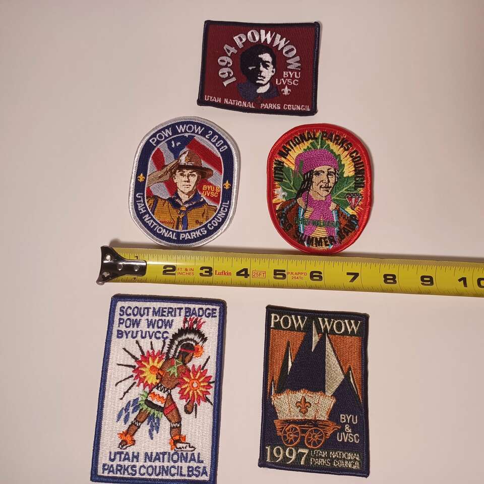 Utah National Parks Council Scout Pow Wow Patches Lot of 5All Different years and different camps: 1994 POW WOW BYU UVSC 1997 POW WOW BYU UVSC 2000 POW WOW BYU UVSC 1995 Summer Camp Chief Walkara
