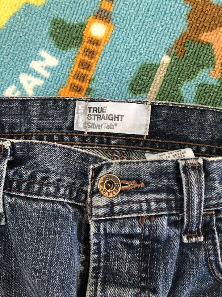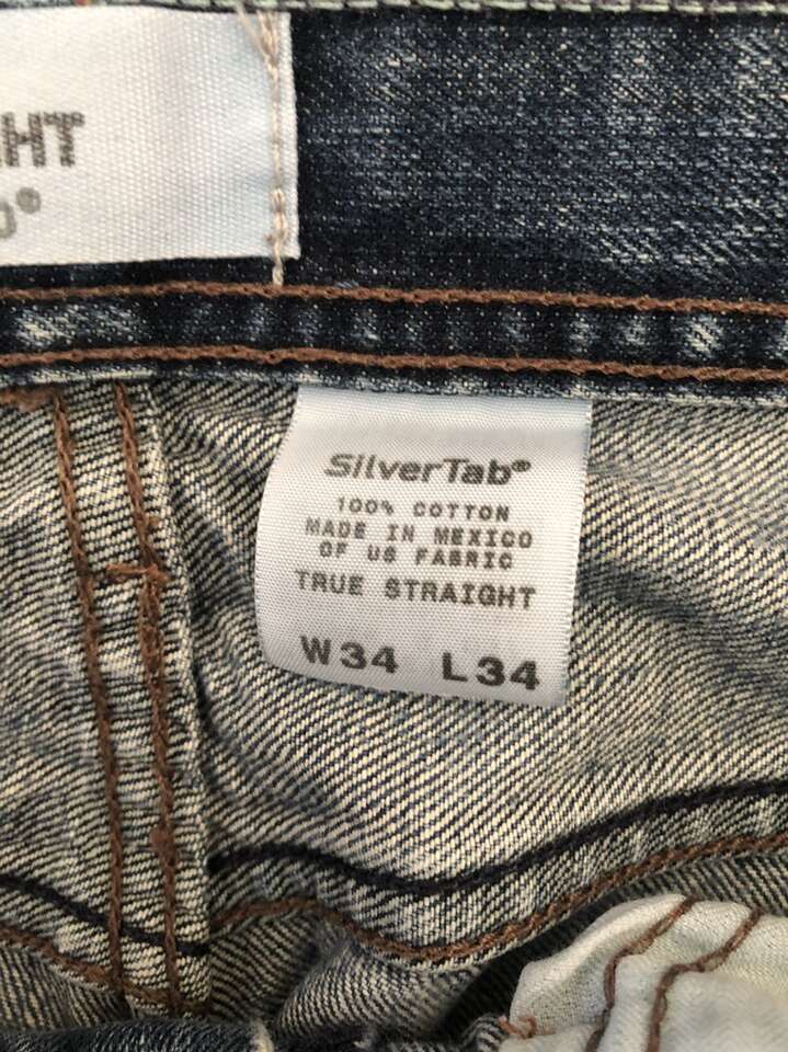 What you’re looking at is a very comfortable pair of Levis Brand SilverTab 34 in the waist 34 on the length. These are button fly [like 501s] which is awesome.