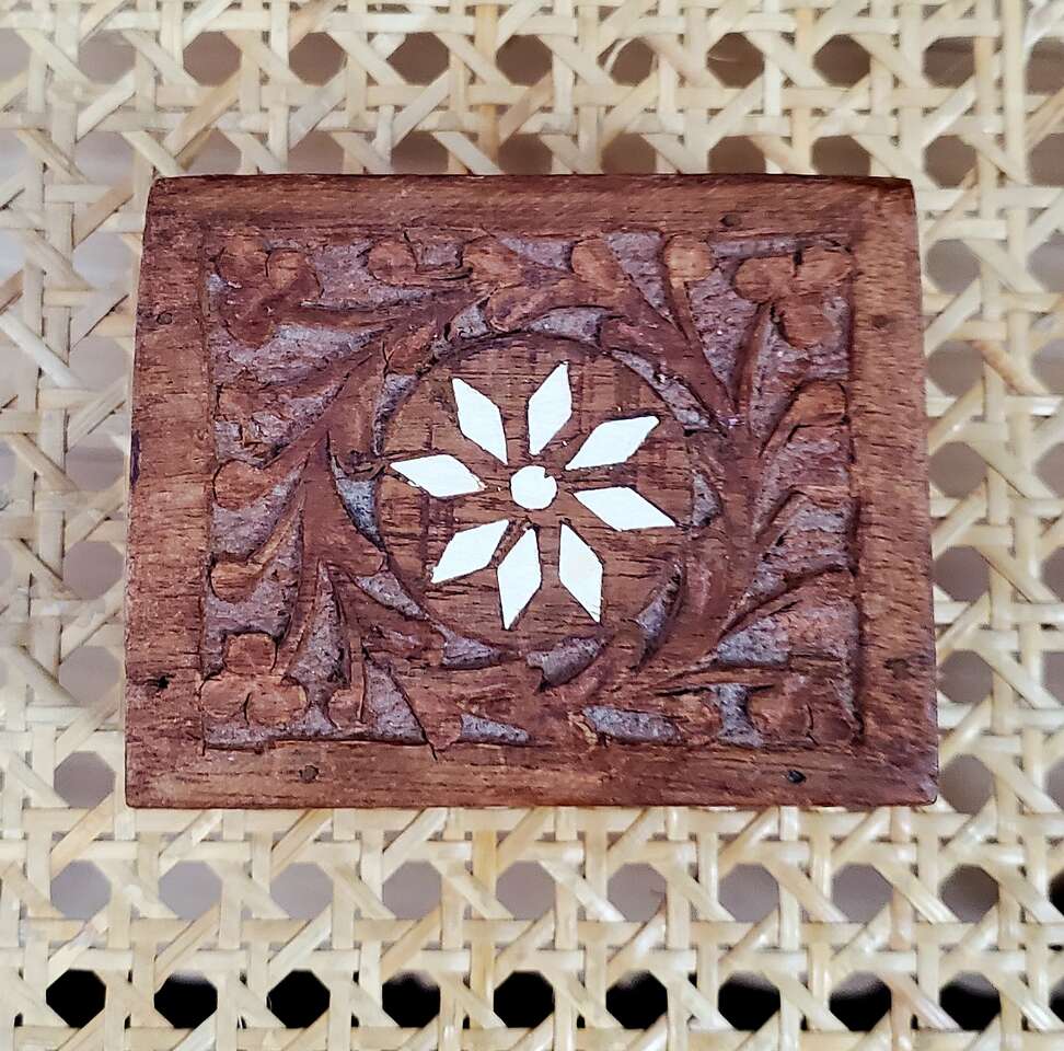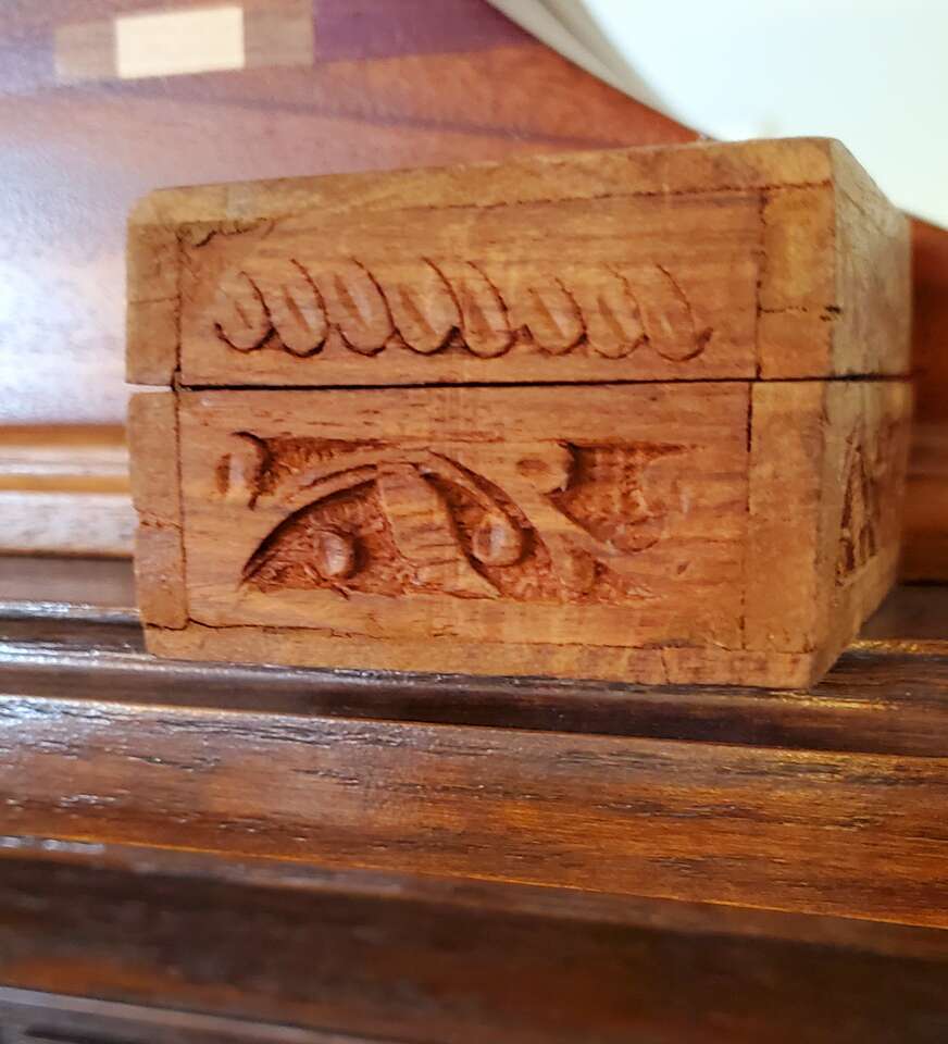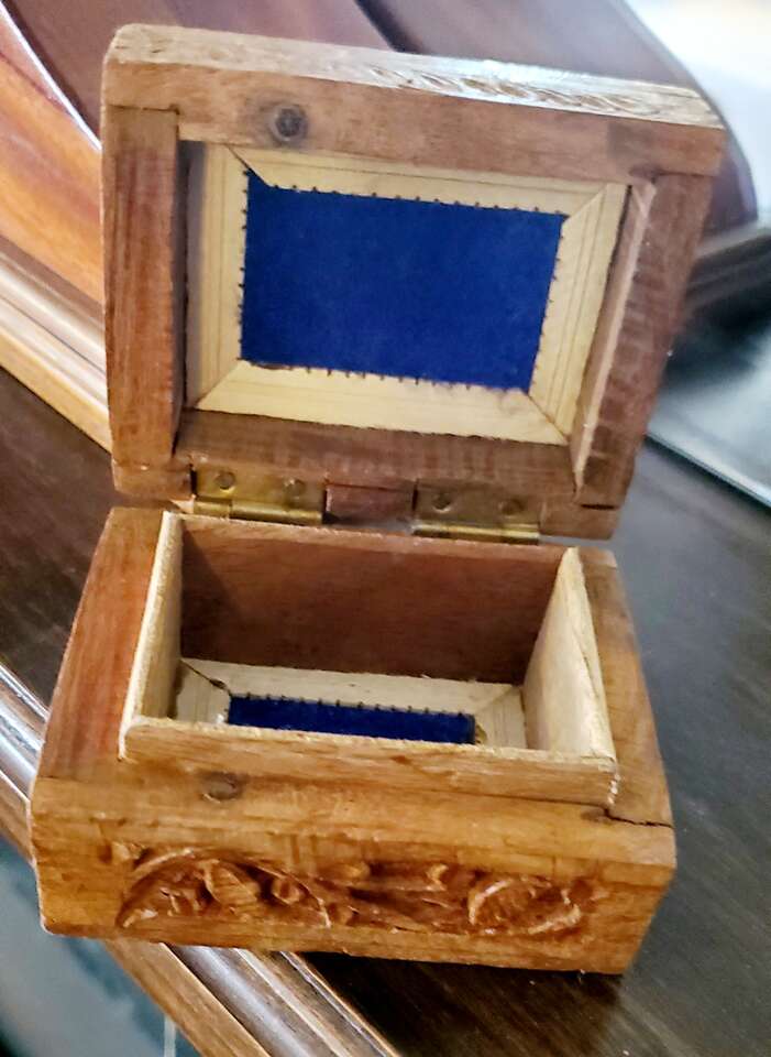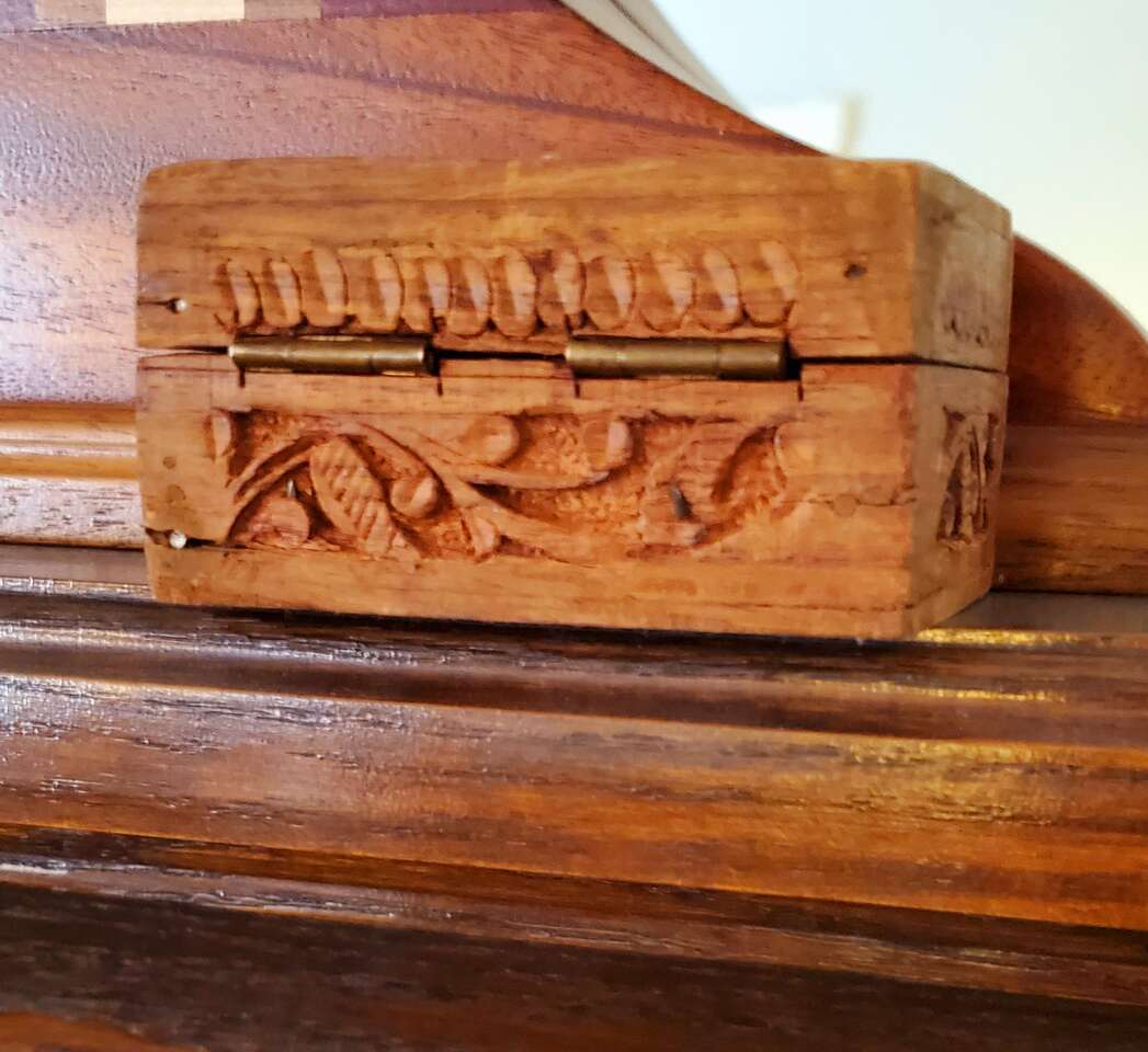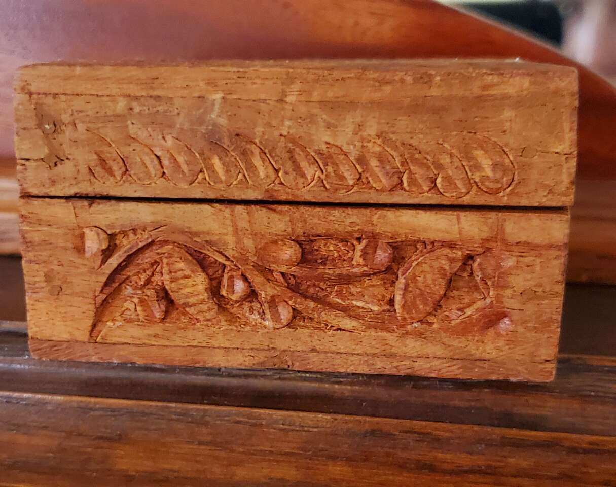 Handcarved Wood Hinged Lid Trinket, Jewelry Box.