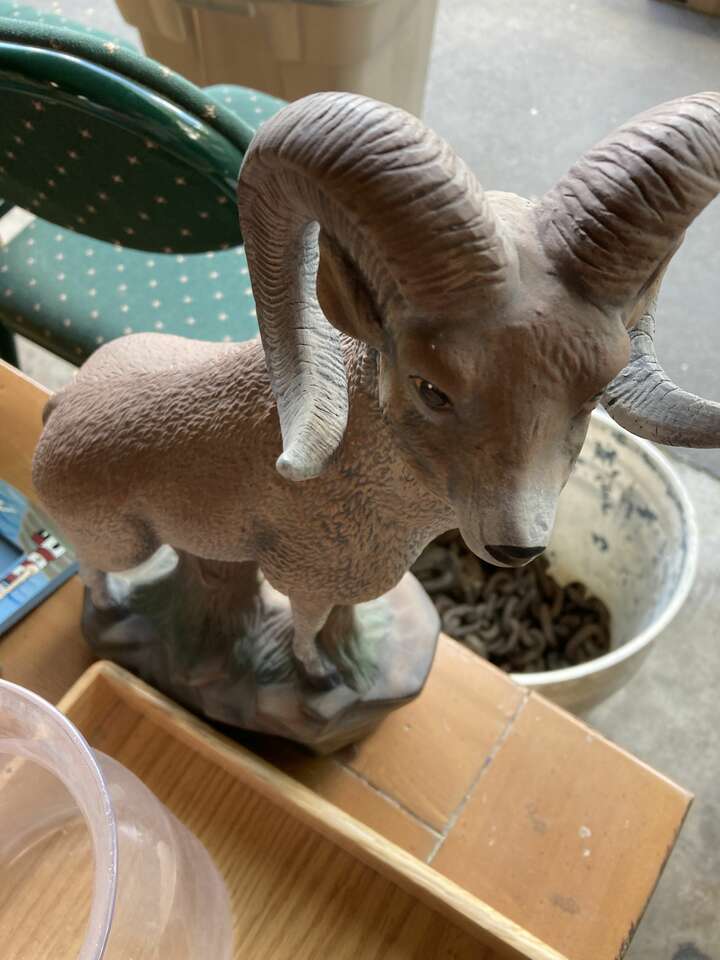 Large Ceramic Ram on Rock Statue - KY Mold Company. 1975 Outdoor Wildlife, Ram Handsome looking Ram on Rock Statue, Figurine, hand painted.