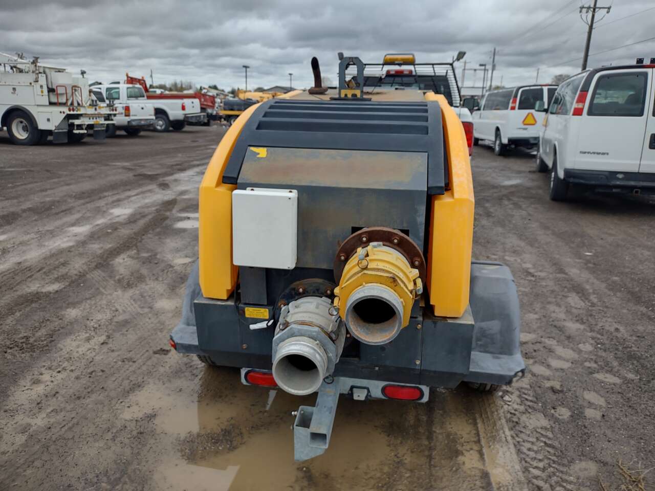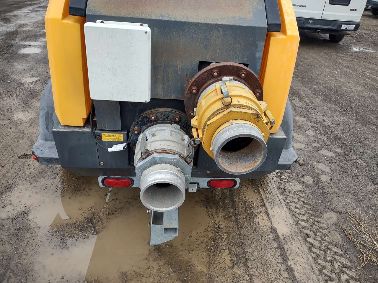 Acme Dynamics 8" Towable Diesel Trash Pump, 4 Cylinder Isuzu diesel engine, 698 hours, 8" Trash Pump, 2700 gallons per minute, 127' max head, max solids 3"×3.5", 37.5 hour run time, 64 db(A) quiet enclosed cabinet, former municipal unit 208-734-3434