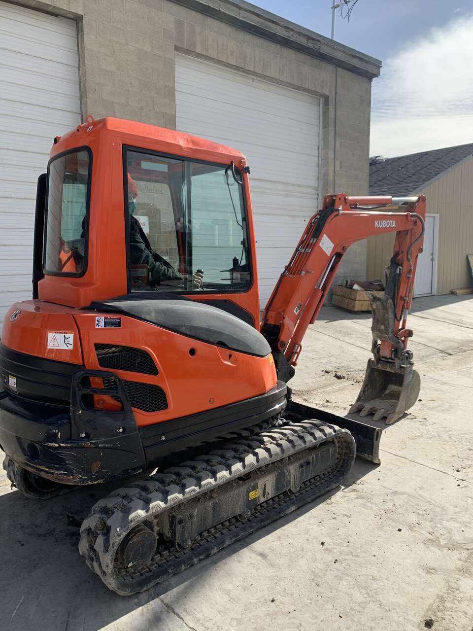 2020 Kubota KX-71 mini excavator rental. Great shape, low hours, meticulously maintained! Has thumb, full cab with heater and AC!