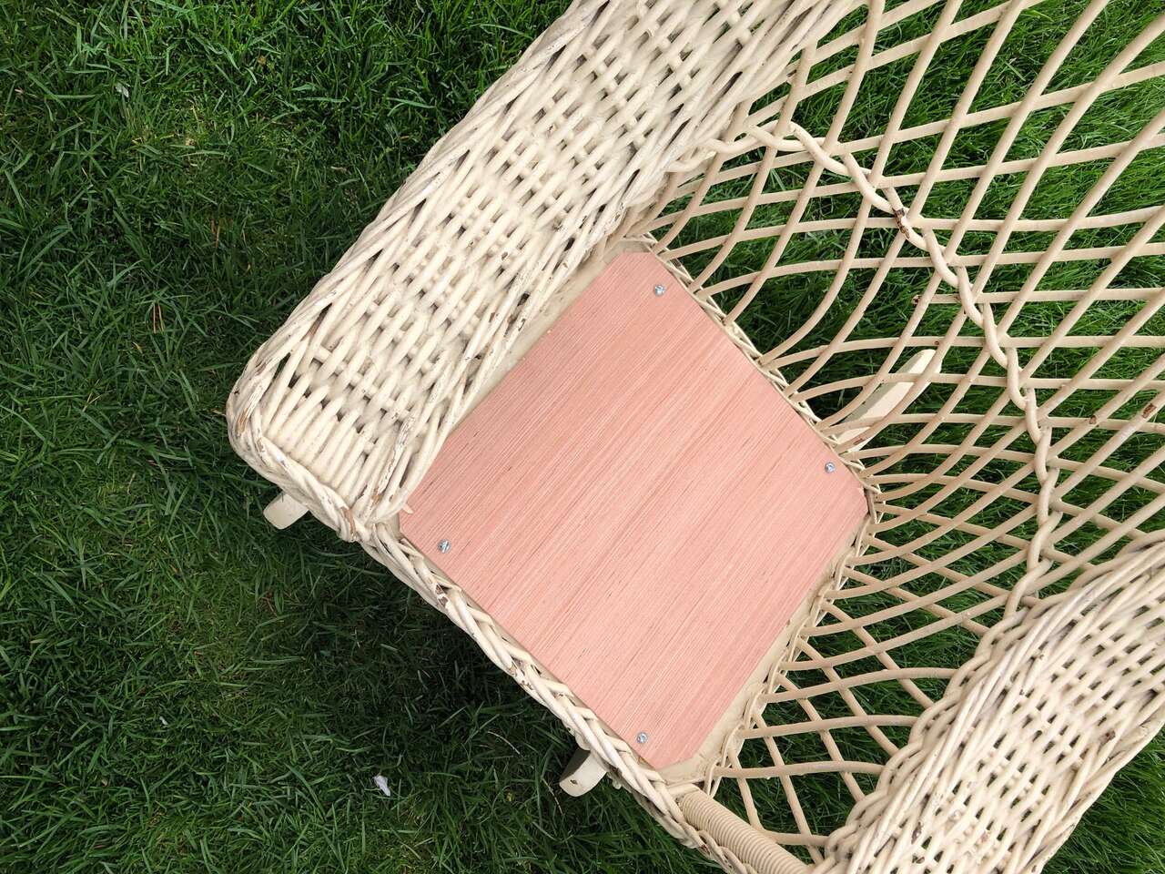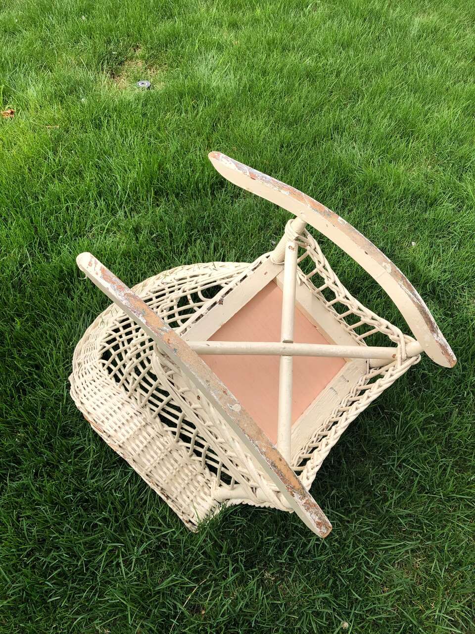 Bar Harbor Style turn of the century child's wicker rocker. New seat put in- but in quite good shape. Reversible seat cushion included. 24" tall- 21" wide -14" deep-Seat height is 11 1/2" ( 13" with cushion.)
