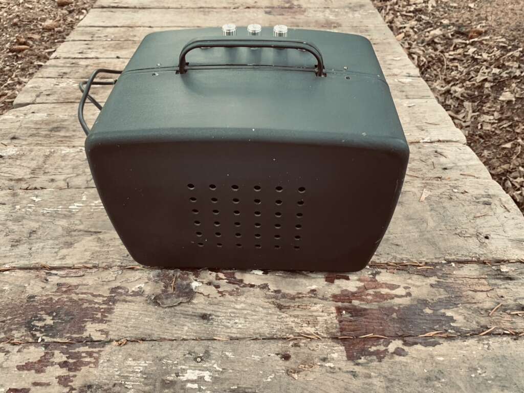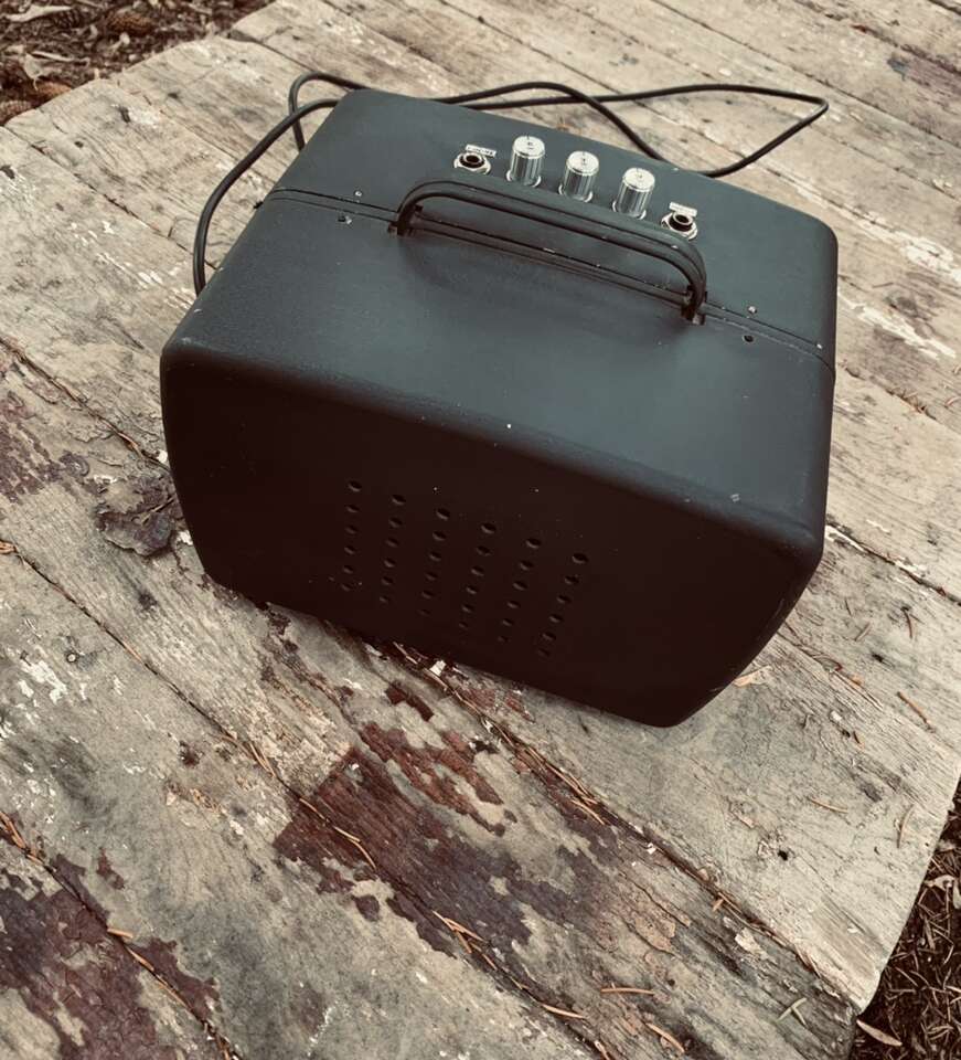 I made this amp using an old 8mm projector aluminum case. The amp is solid state with just a volume, base, tone, input, and headphones. It’s pretty cool and light. The metal cabinet gives it more of a twangy tone. Definitely an amp that would stand you out of the crowd. Willing to think about trades for guitars or vintage audio pre-1965. Please text. PayPal and Venmo certified. Thanks