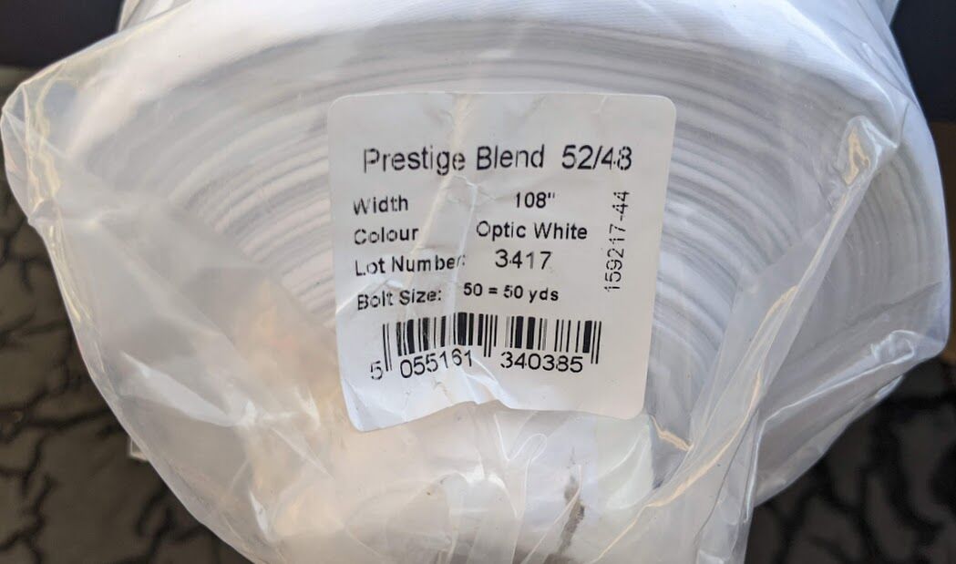 Fabric roll A is 108 inches wide and Approx. 50 yards long