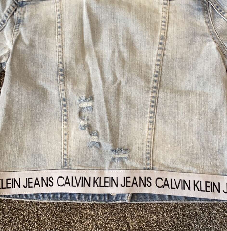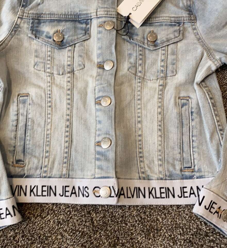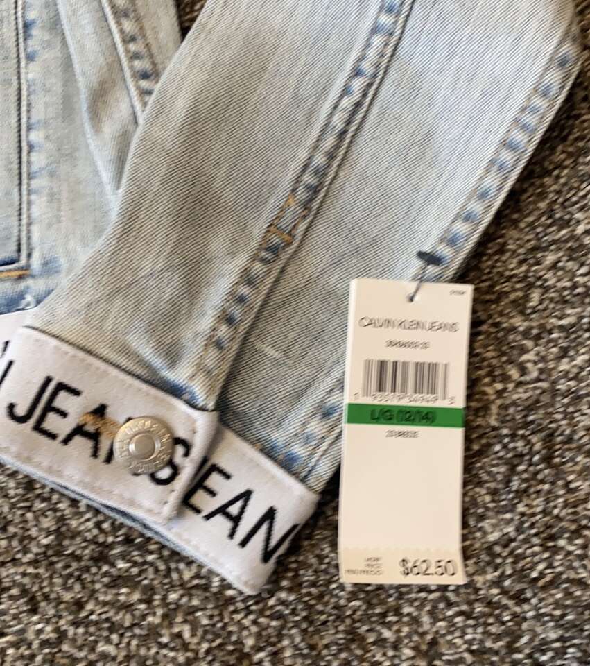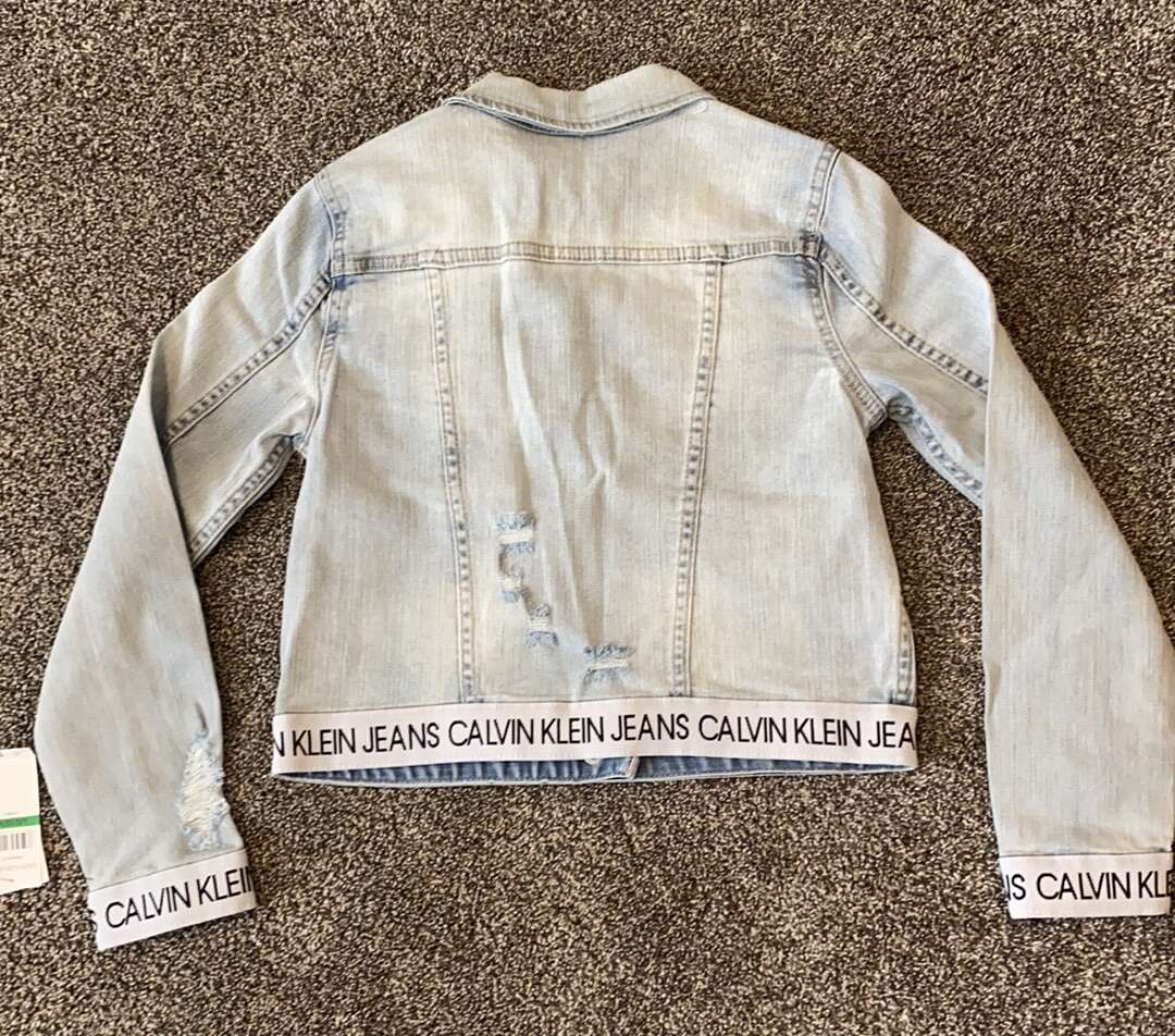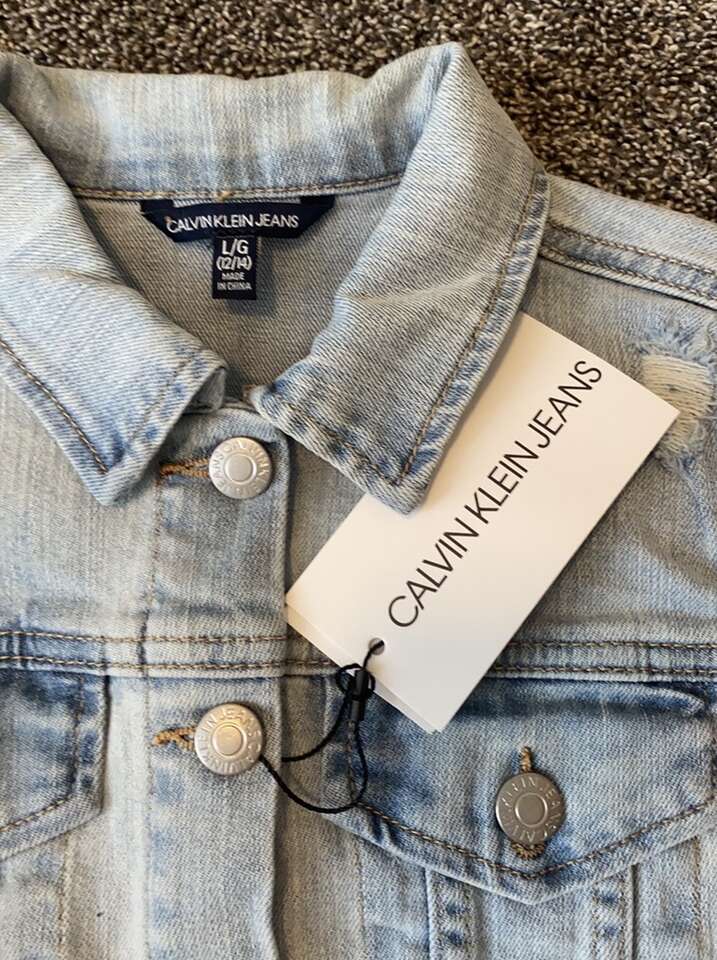 NEW! Calvin Klein light denim jean jacket in girl's size L (12/14). Smoke-free, pet-free home. $35 (originally $62), cash only please.