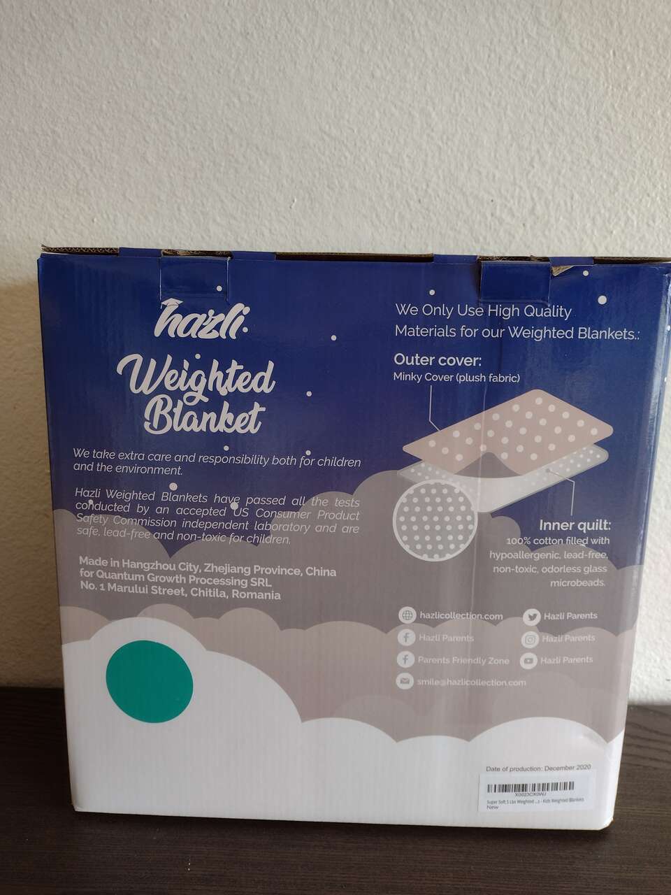 **Brand new, never used. In original box. **5 lb, 36 in X 48 in **Minky Soft **Turquoise/Gray **Washable